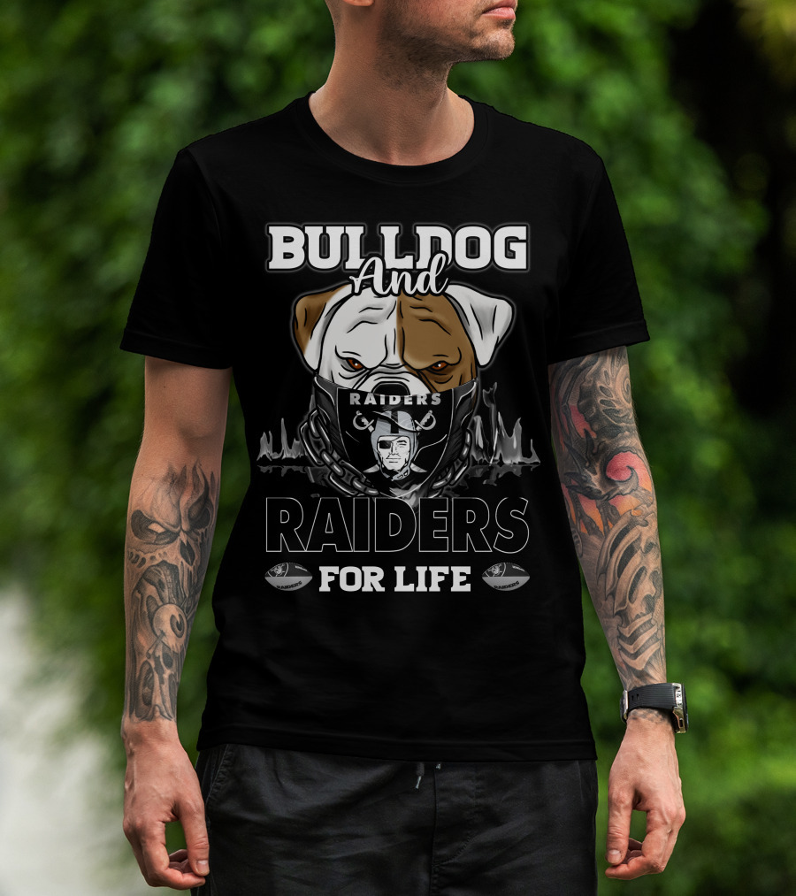 The Bulldog and Raiders for Life T-shirt is designed for everyday wear and a consistent fit. Fabric is pre-shrunk ring-spun cotton with durable stitching. See the size chart below for exact measurements.
