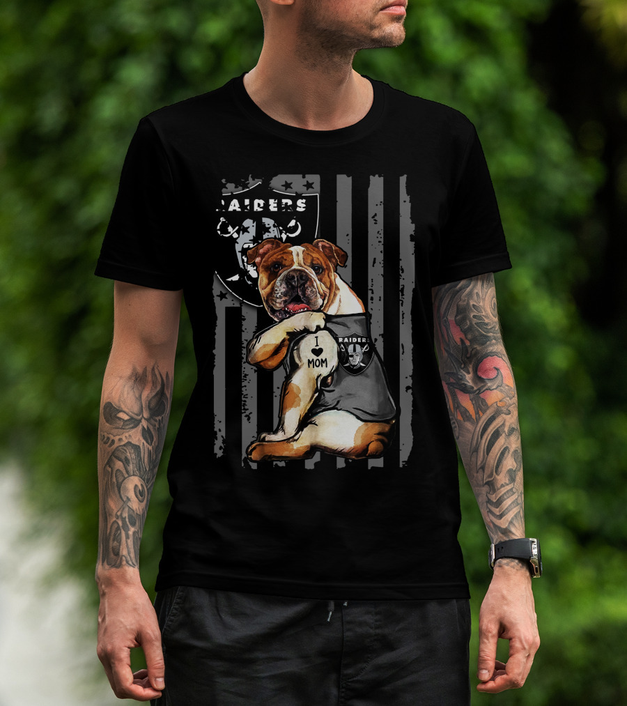 Bulldog I Love Mom Oakland Raiders T-Shirt