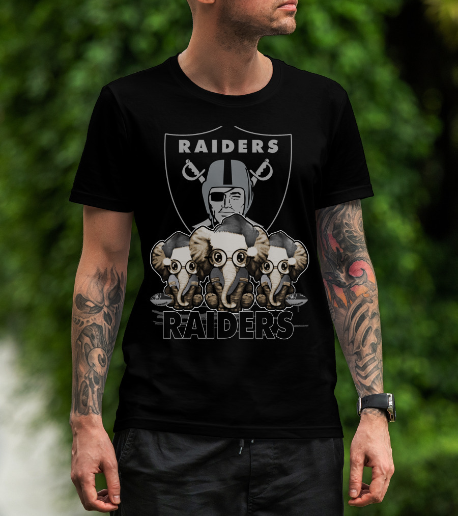 The Elephan Xmas Raiders Football Fan T-shirt is designed for everyday wear and a consistent fit. Fabric is pre-shrunk ring-spun cotton with durable stitching. See the size chart below for exact measurements.