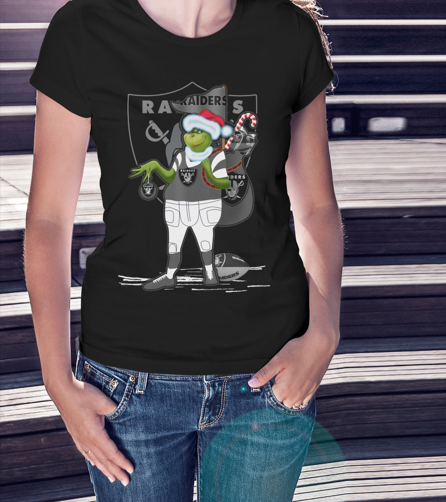 Grinchxmas Raiders Santa Hat Candy Cane Football T-Shirt