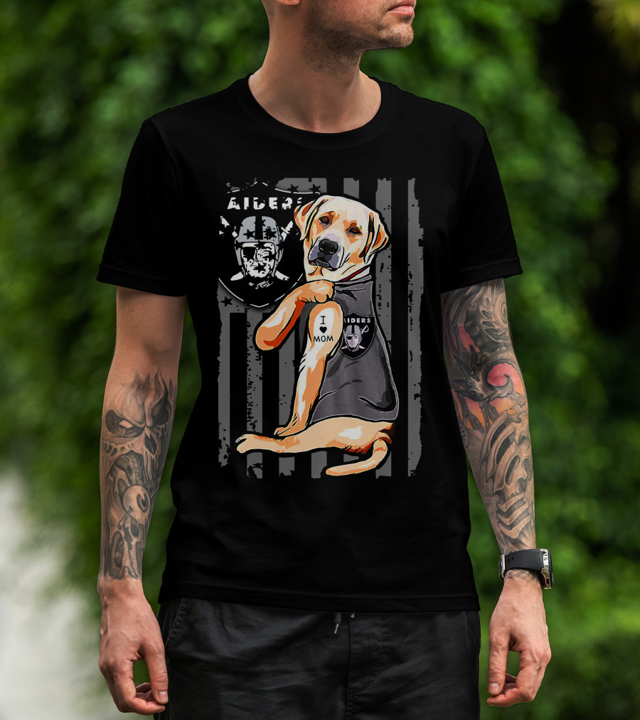 Labrador Retriever I Love Mom With Raiders Shield T-Shirt