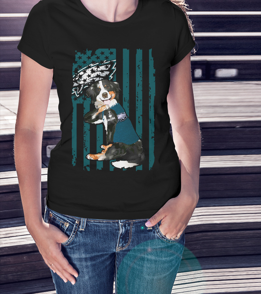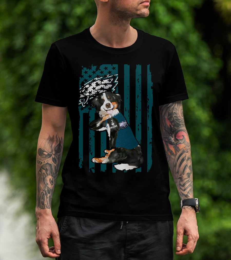 Border Collie I Love Mom Philadelphia Eagles Football Fan T-Shirt