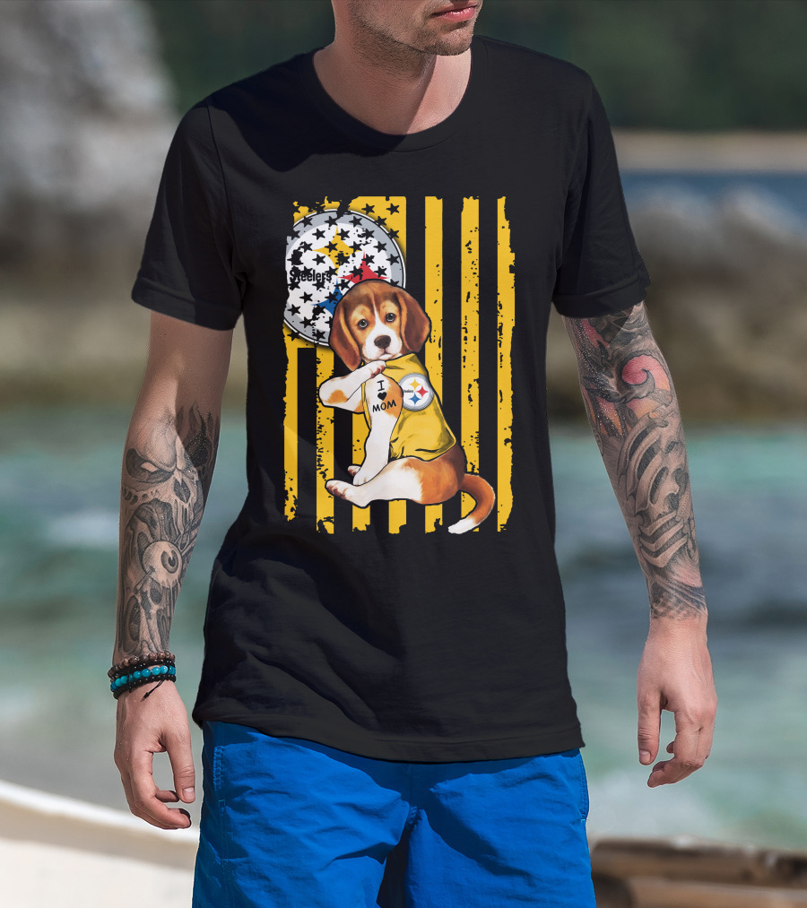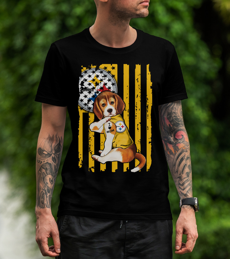 Beagle I Love Mom Pittsburgh Steelers T-Shirt