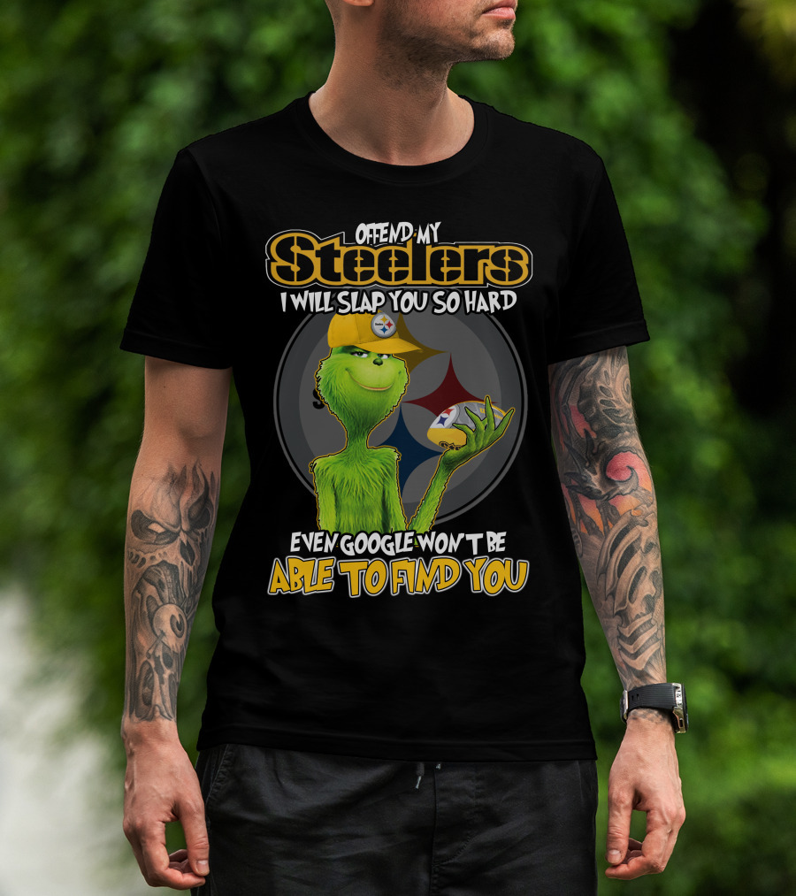 The Offend My Steelers Grinch V2 I Will Slap You So Hard Even Google Won't Be Able to Find You T-shirt is designed for everyday wear and a consistent fit. Fabric is pre-shrunk ring-spun cotton with durable stitching. See the size chart below for exact measurements.