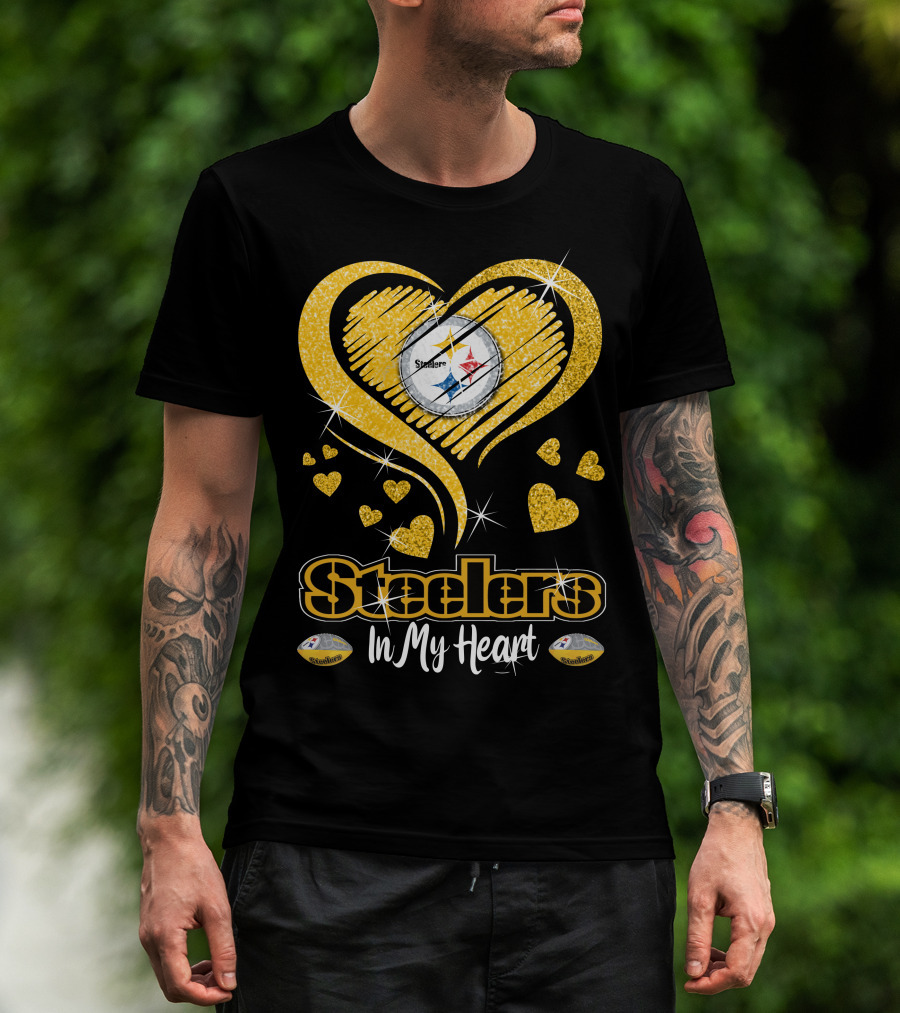 Steelers In My Heart Pittsburgh Sparkling Heart T-Shirt