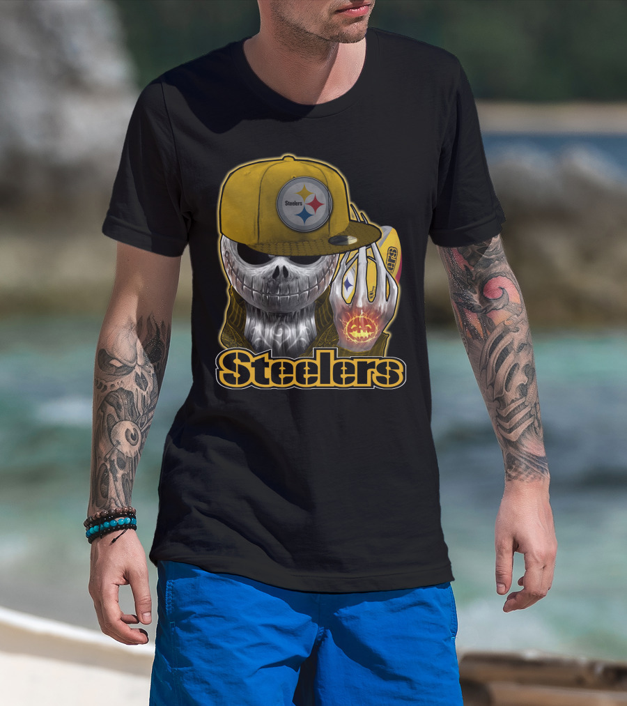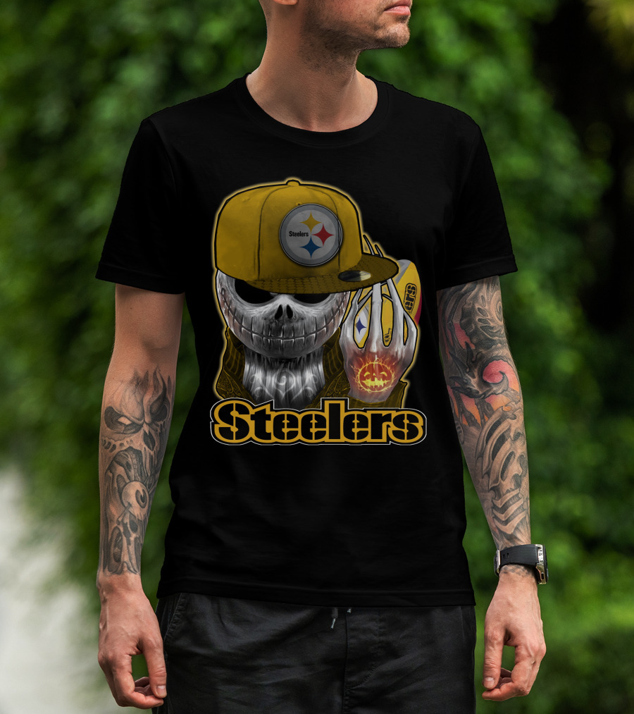 Steelers Skull With Yellow Cap And Pumpkin Hand T-Shirt
