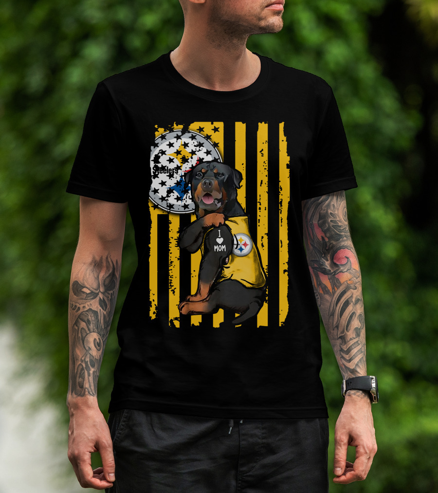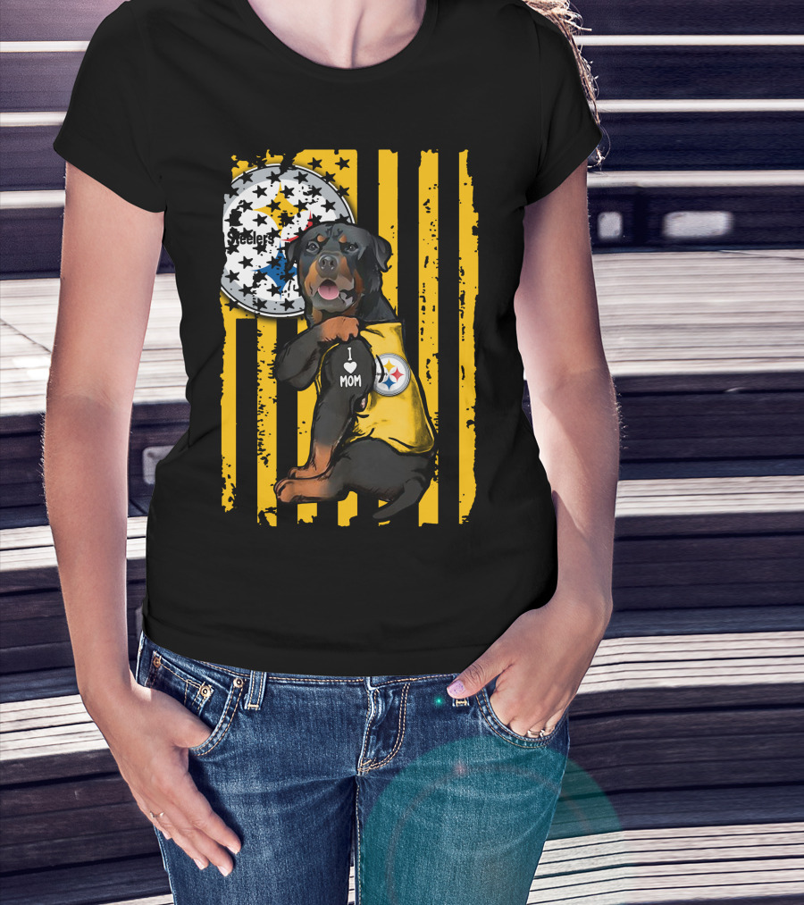 Rottweiler I Love Mom Pittsburgh Steelers Fan Stripes T-Shirt