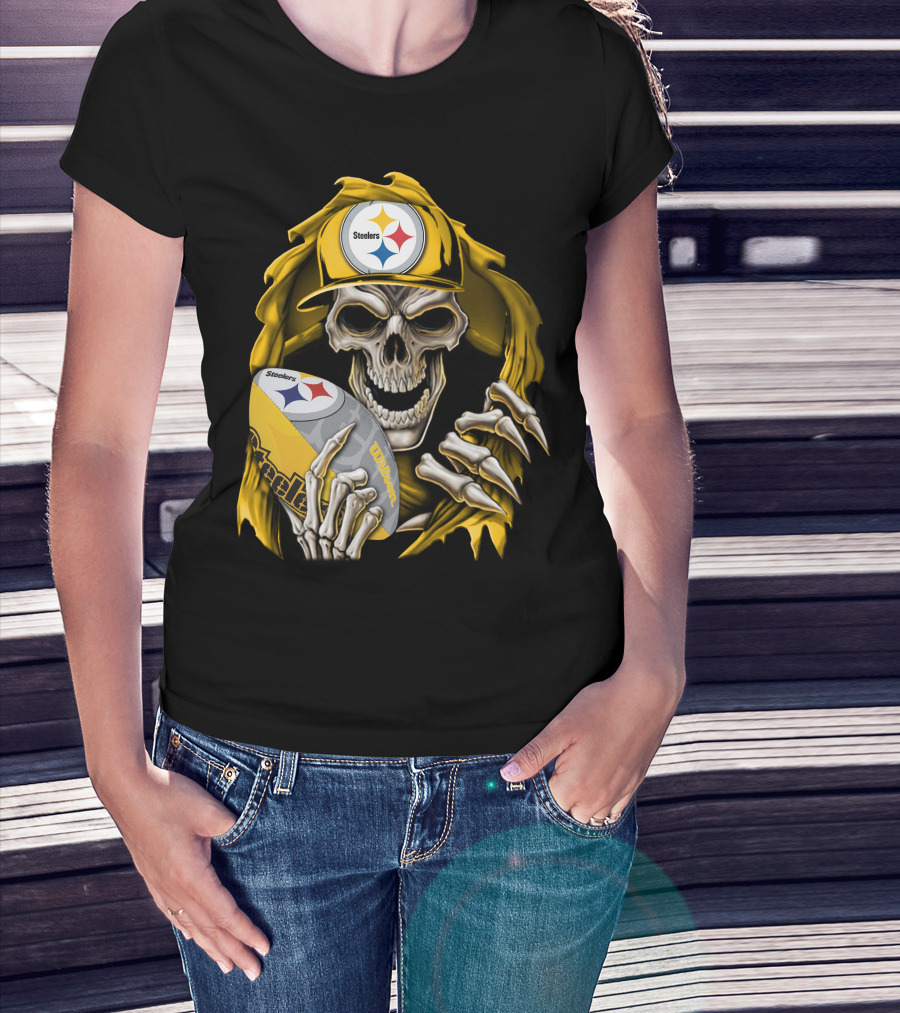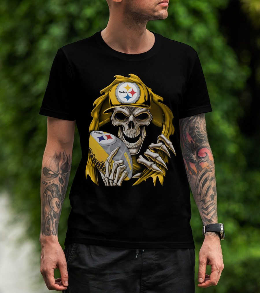 Skullbong Steelers Skeleton With Football And Cap T-Shirt
