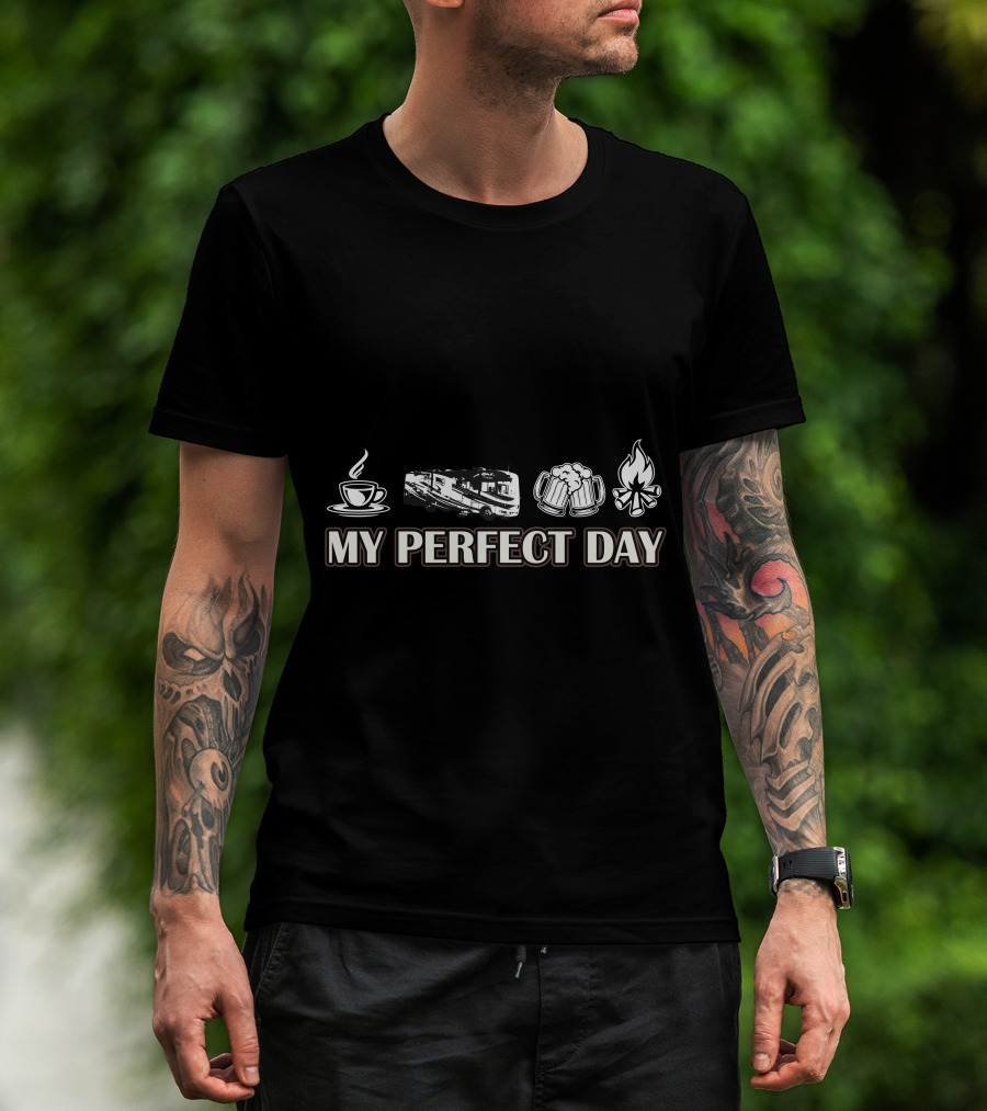 My Perfect Day Coffee Motorhome Beer Campfire T-Shirt