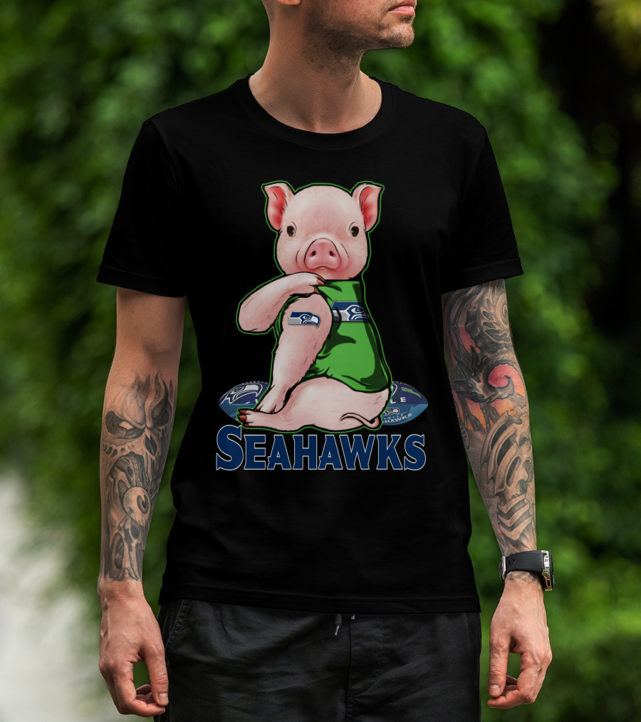 Pig Wearing Seattle Seahawks Jersey With Team T-Shirt