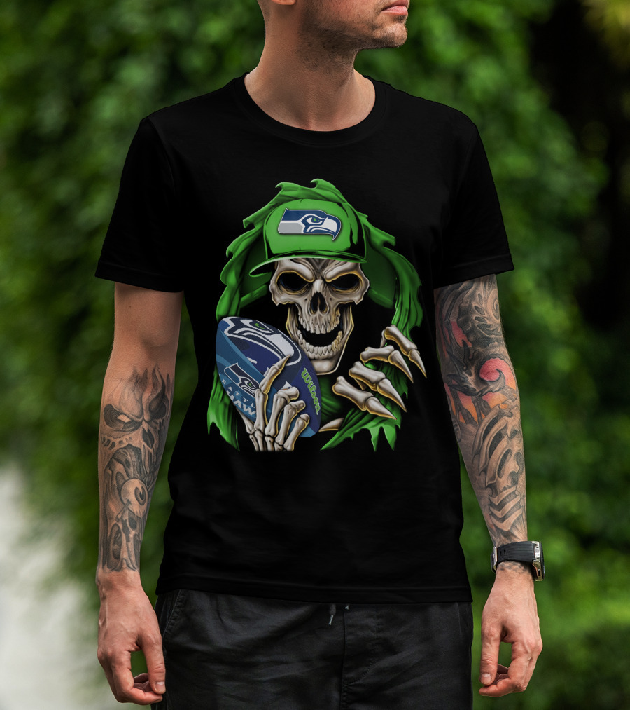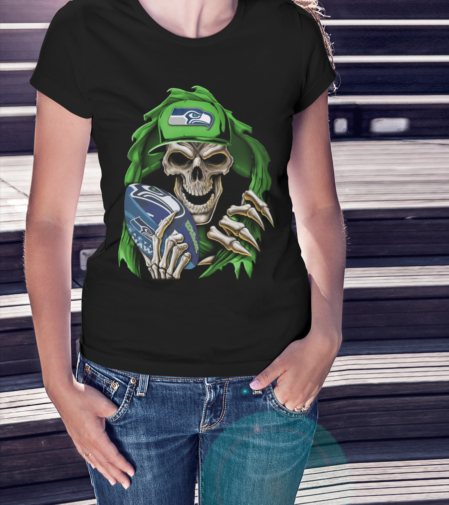 Skullbong Seattle Seahawks Football Skeleton T-Shirt