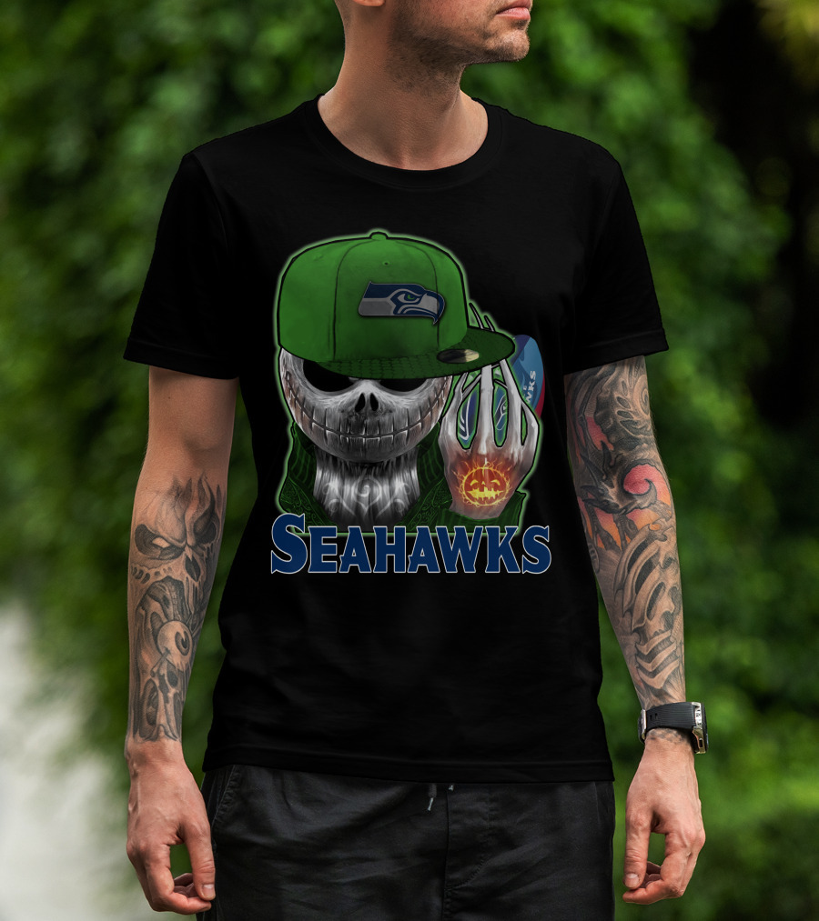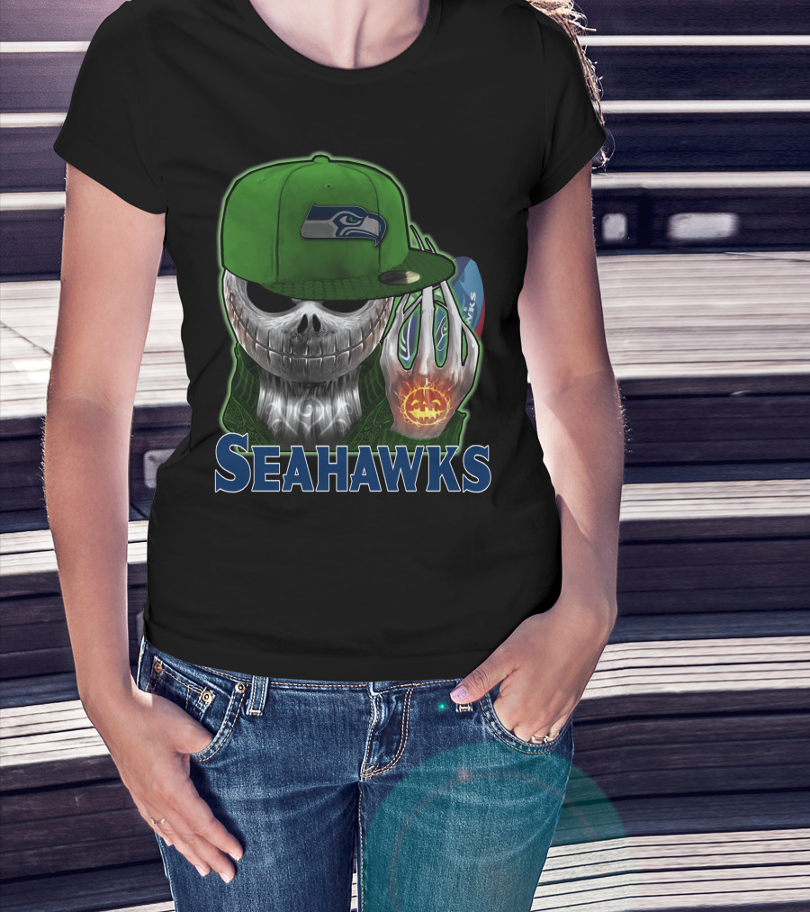 Jackskull In Green Cap Holding Pumpkin Seattle Seahawks T-Shirt