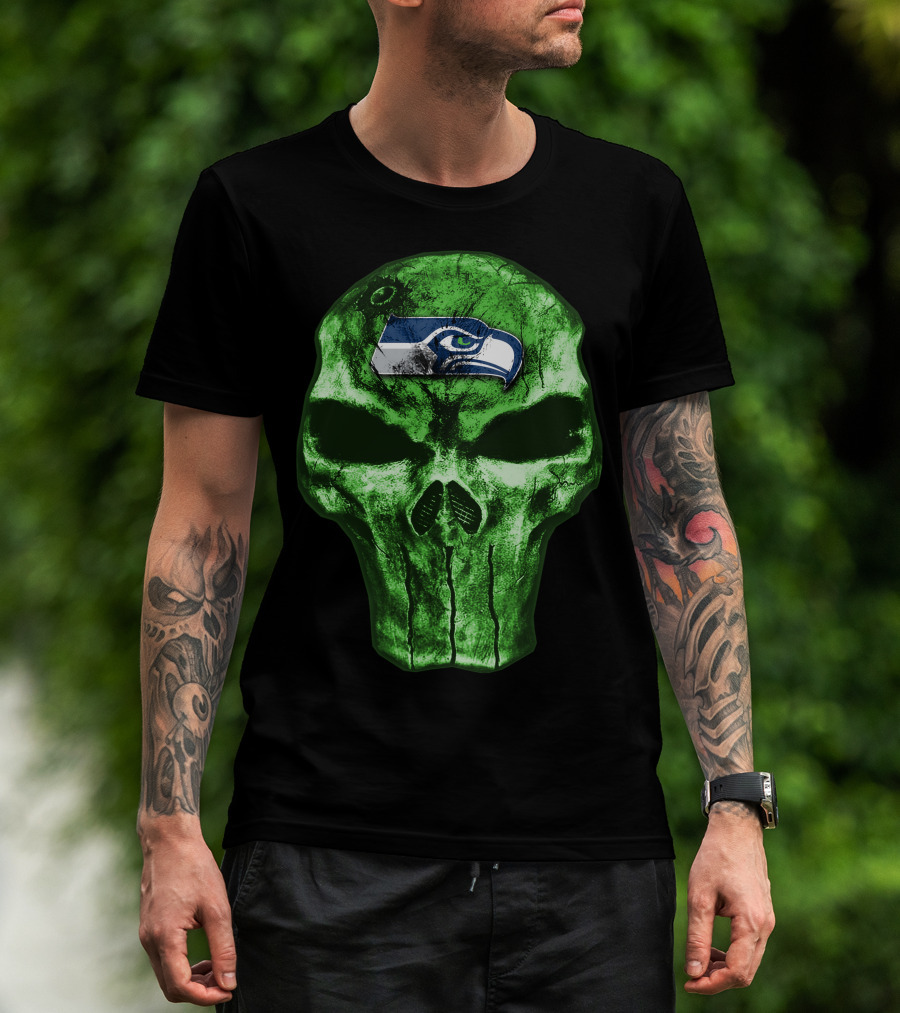 Seattle Seahawks Green Skull Design V4 T-Shirt