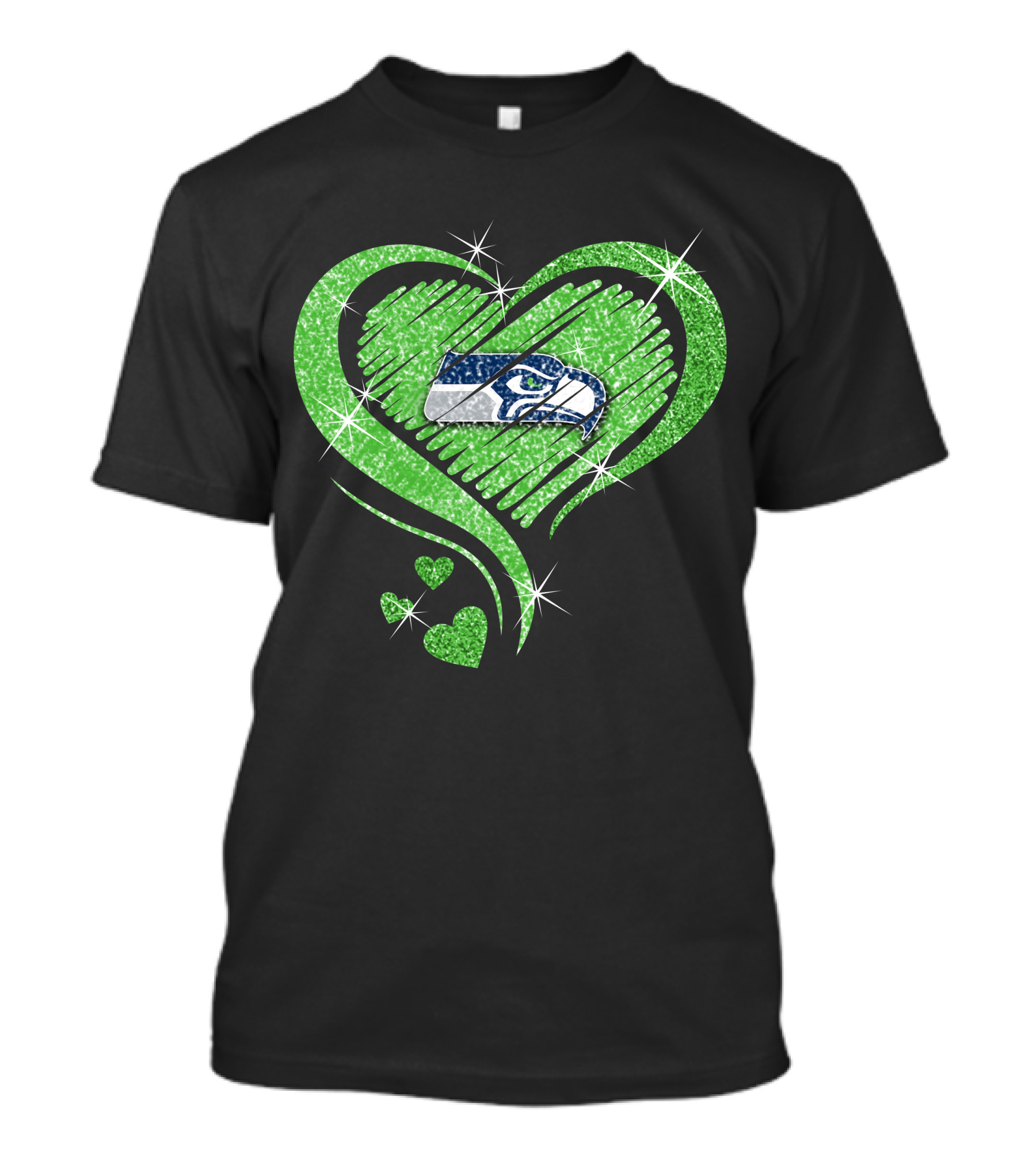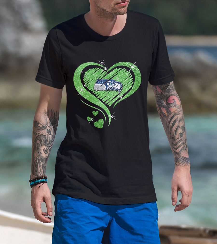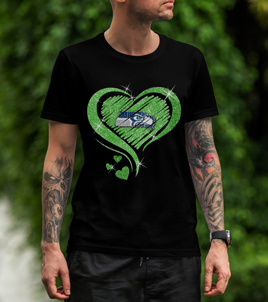 Seattle Seahawks Glitter Heart Diamond Logo Sparkle Hearts T-Shirt