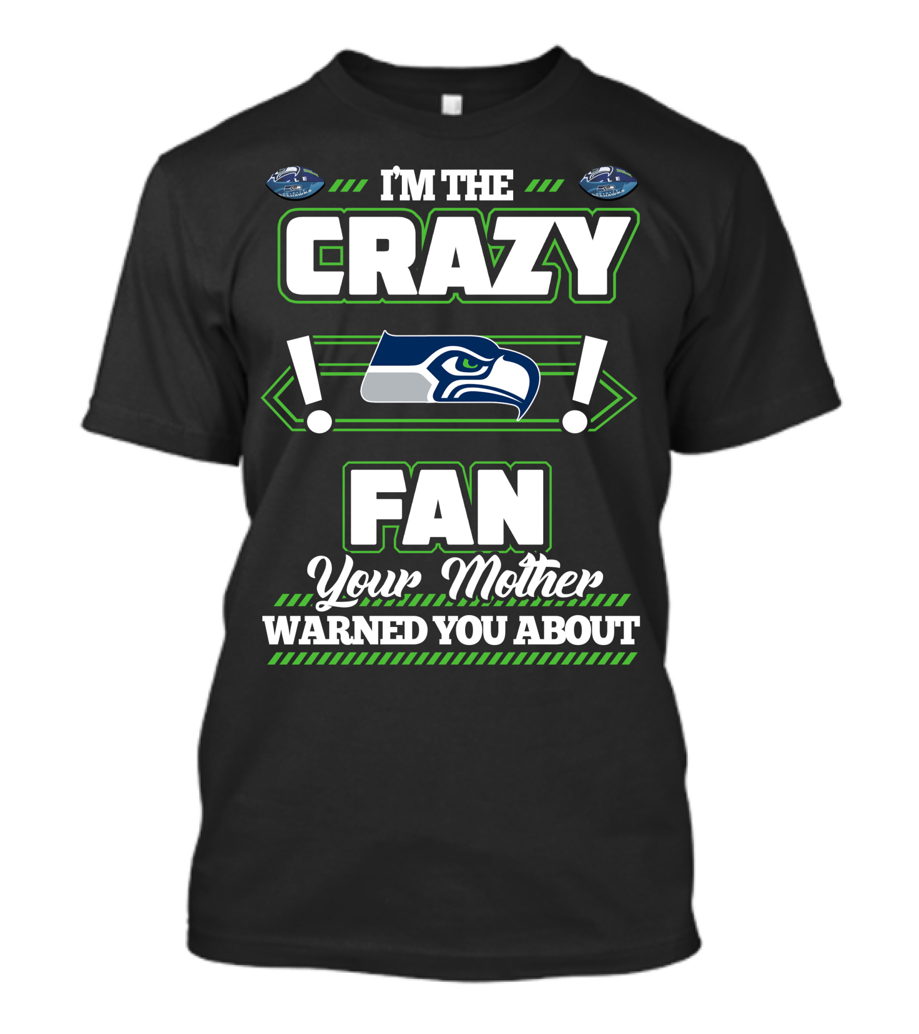The I'm the Crazy Fan Your Mother Warned You About Seattle Seahawks T-shirt is designed for everyday wear and a consistent fit. Fabric is pre-shrunk ring-spun cotton with durable stitching. See the size chart below for exact measurements.