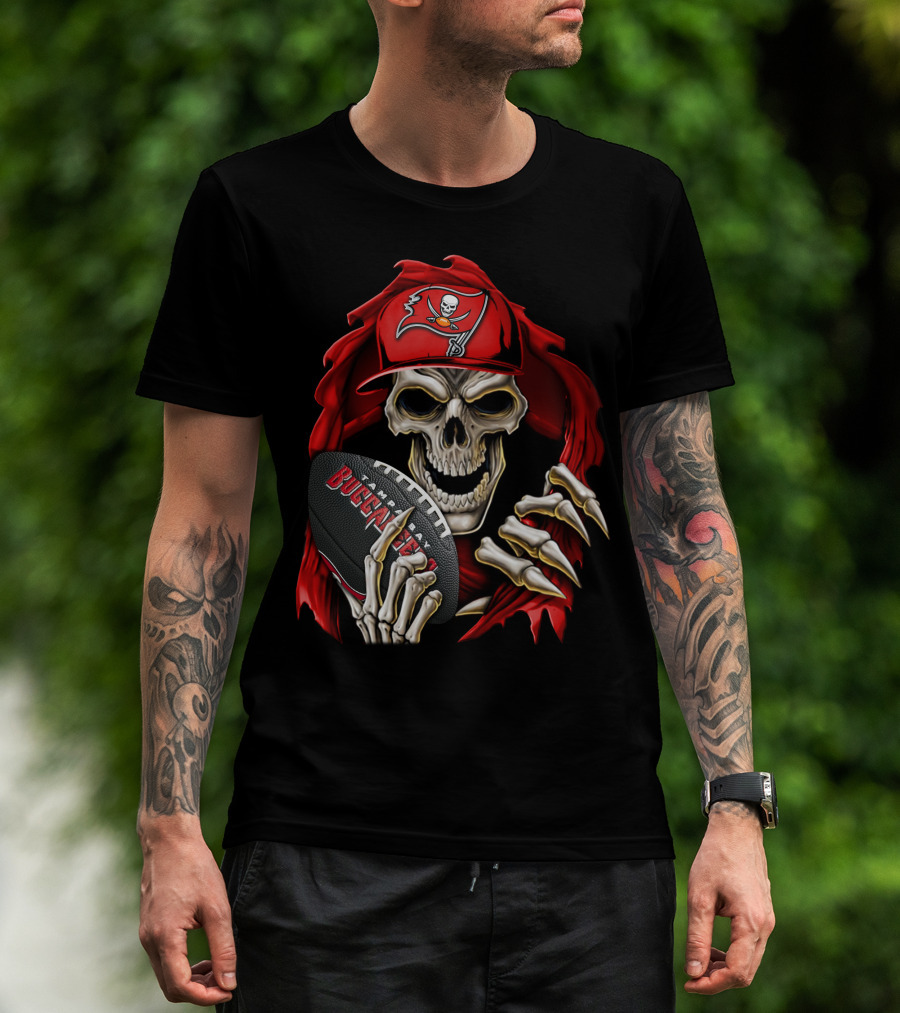 Skullbong Buccaneers Skeleton With Football And Red Cap T-Shirt