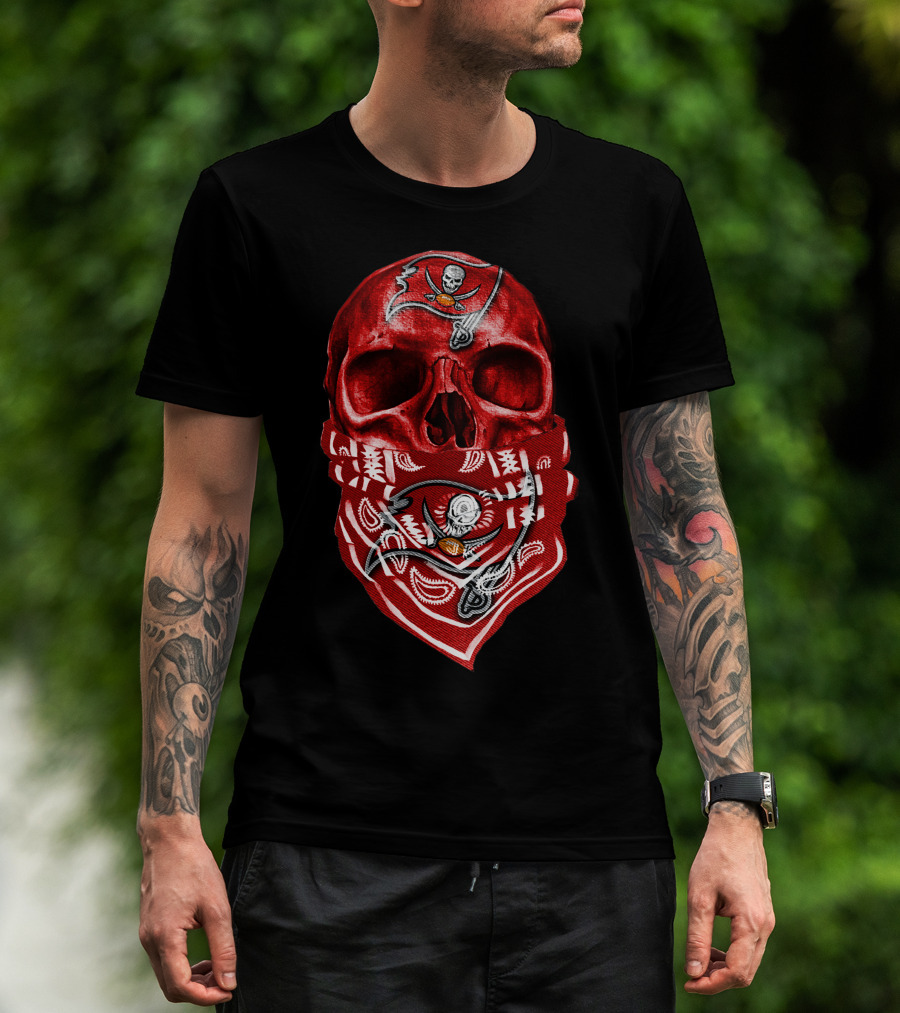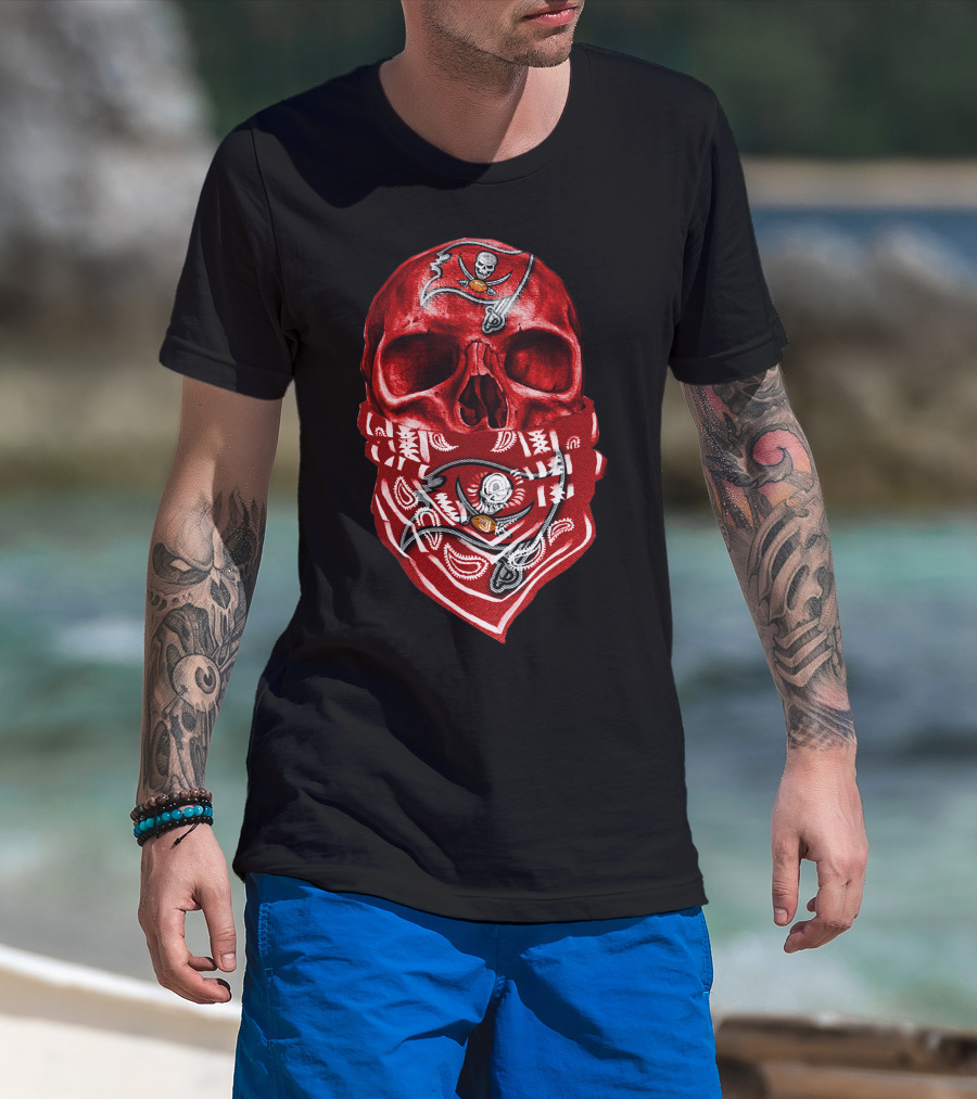 Skull V5 Tampa Bay Buccaneers Bandana Pirate Flag T-Shirt