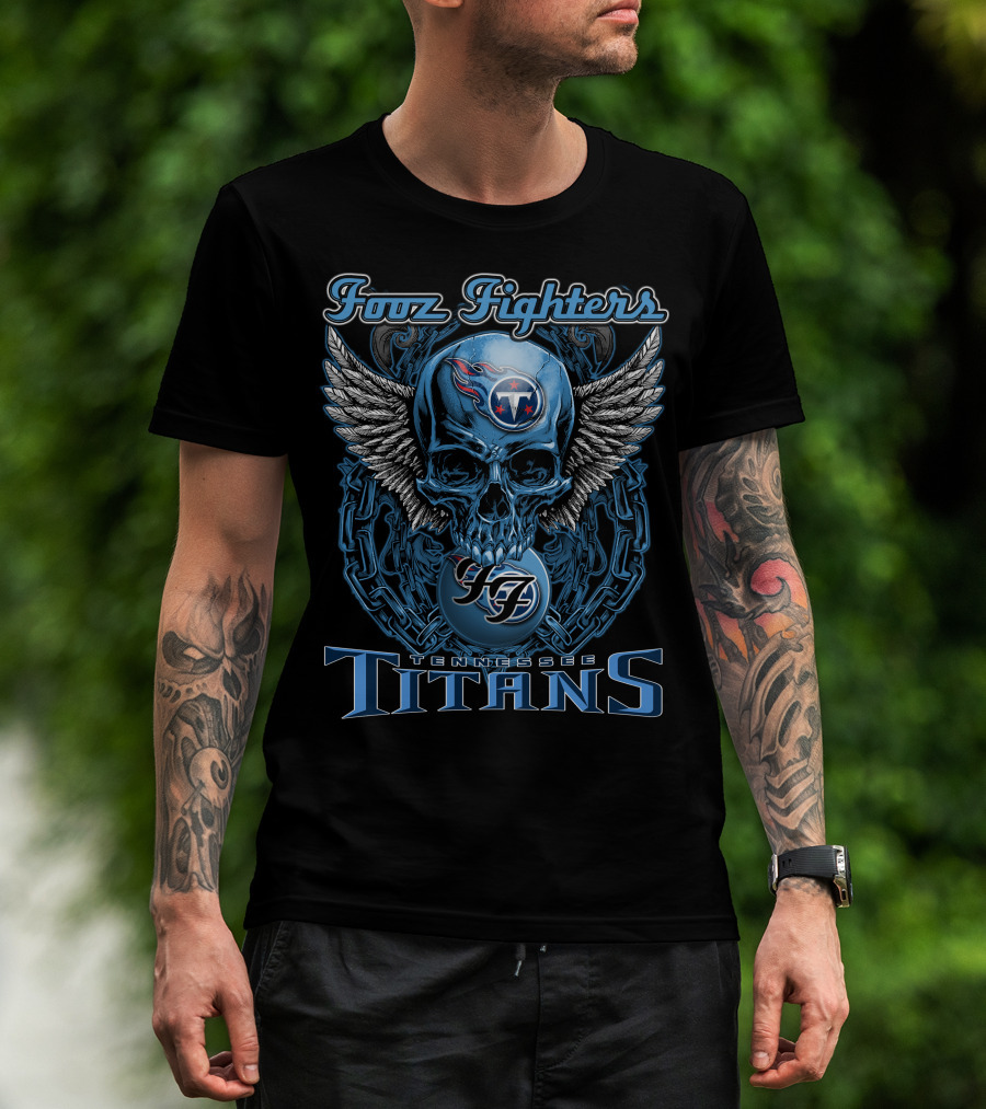 Foo Fighters Tennessee Titans Skull Winged T-Shirt
