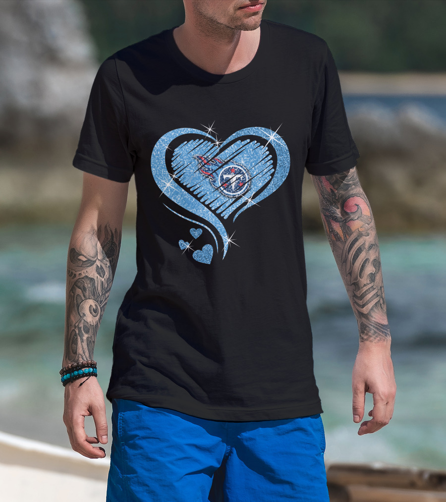 Tennessee Titans Heart Diamond Logo Sparkle T-Shirt