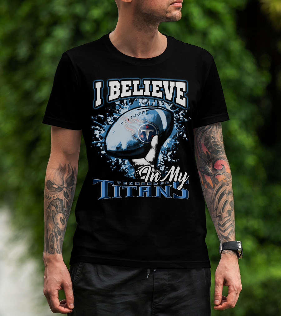 The I Believe in My Tennessee Titans T-shirt is designed for everyday wear and a consistent fit. Fabric is pre-shrunk ring-spun cotton with durable stitching. See the size chart below for exact measurements.