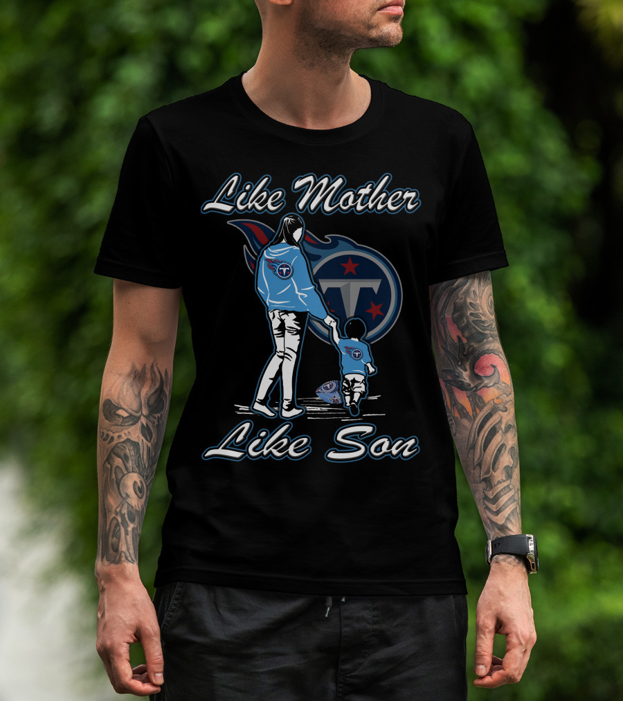 The Like Mother Like Son Tennessee Titans T-shirt is designed for everyday wear and a consistent fit. Fabric is pre-shrunk ring-spun cotton with durable stitching. See the size chart below for exact measurements.