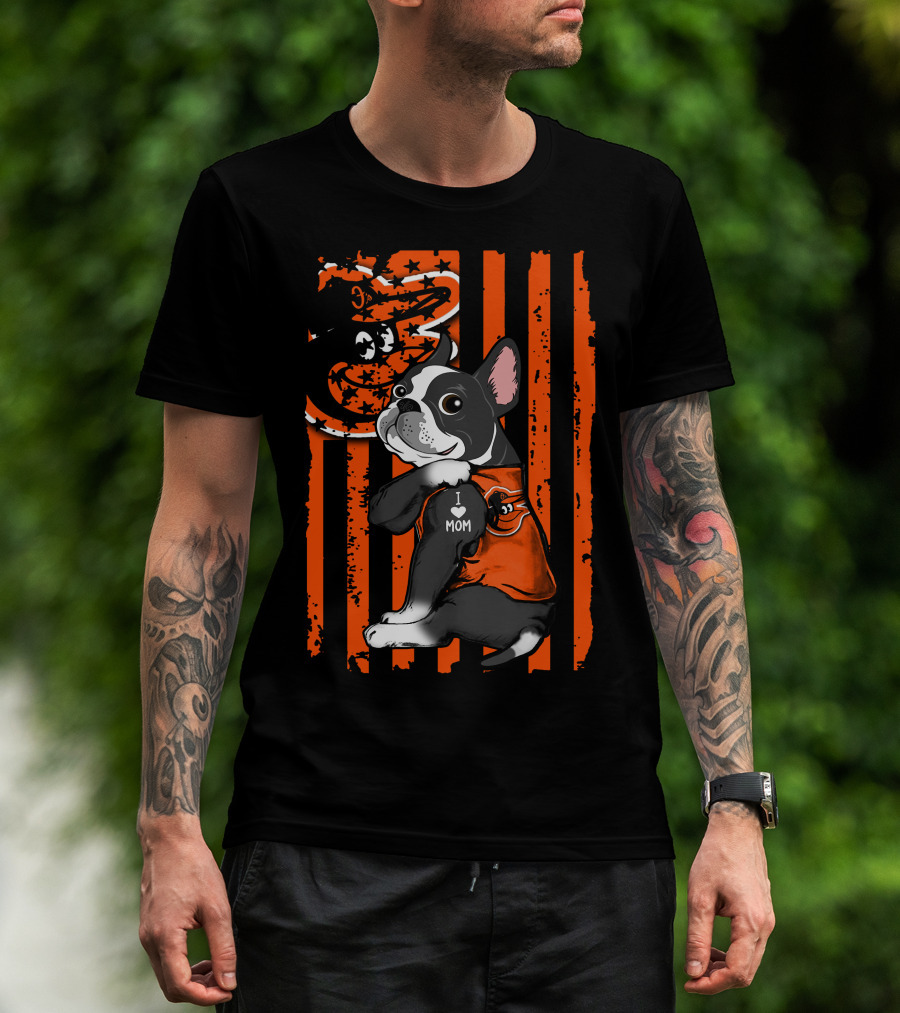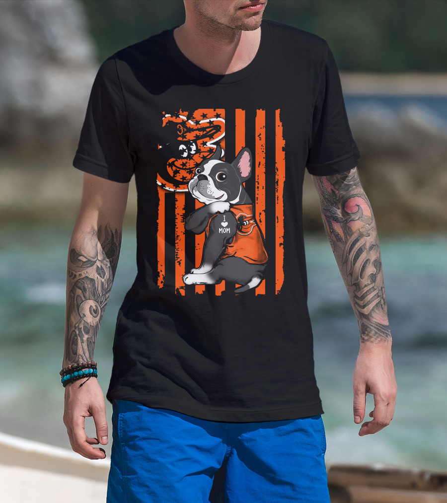 Boston Terrier Orioles I Love Mom American Flag T-Shirt