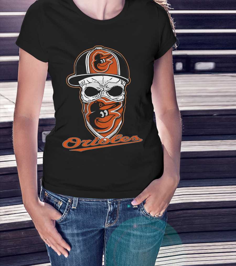Skull Face Mask Baltimore Orioles Logo Hat T-Shirt