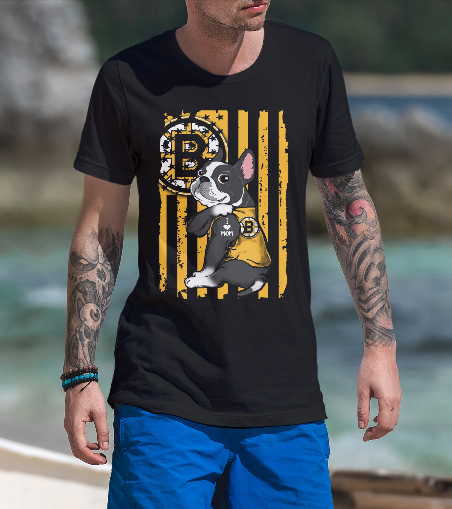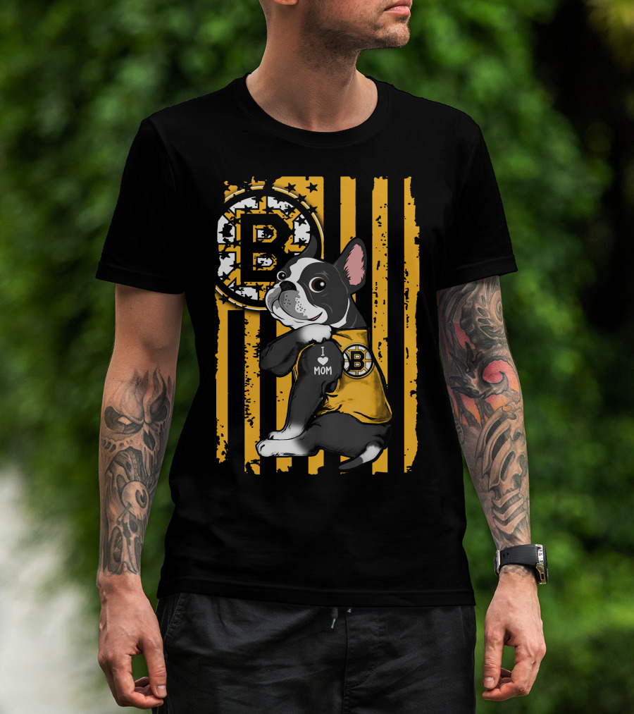 Boston Terrier I Love Mom Boston Bruins Stripes T-Shirt