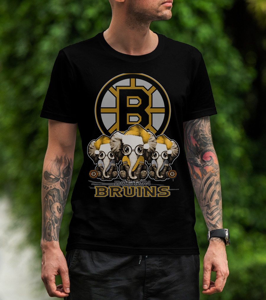 The Boston Bruins Elephant Xmas T-shirt is designed for everyday wear and a consistent fit. Fabric is pre-shrunk ring-spun cotton with durable stitching. See the size chart below for exact measurements.