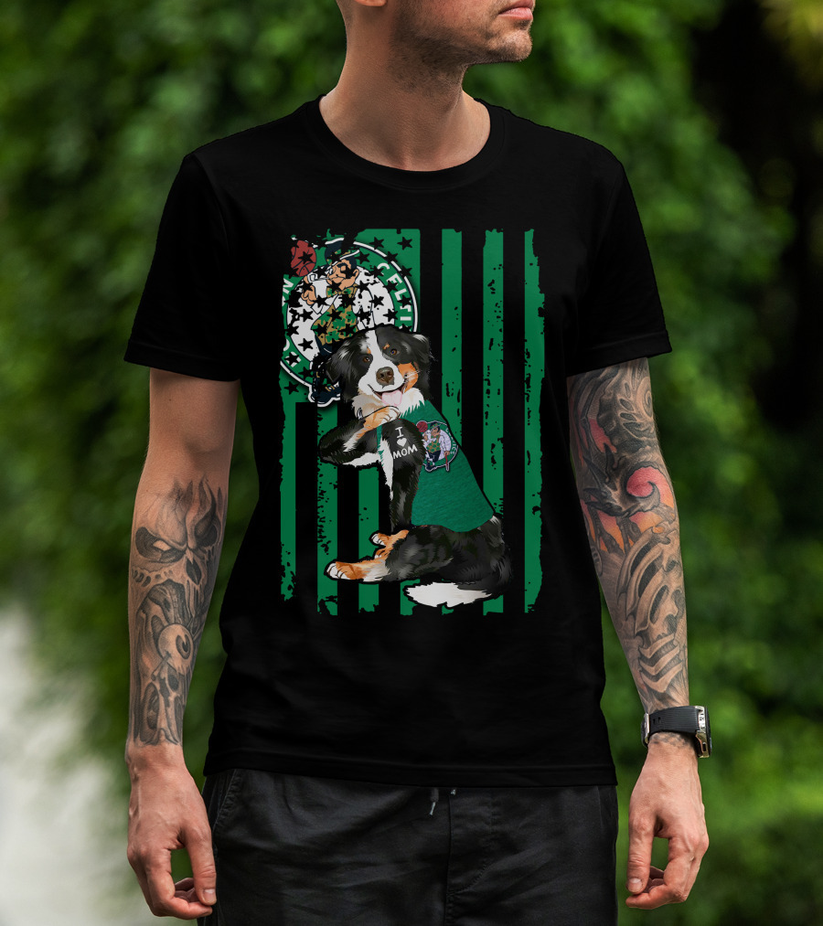 Border Collie I Love Mom Boston Celtics T-Shirt