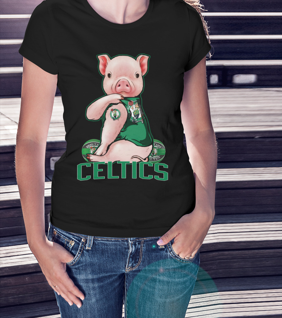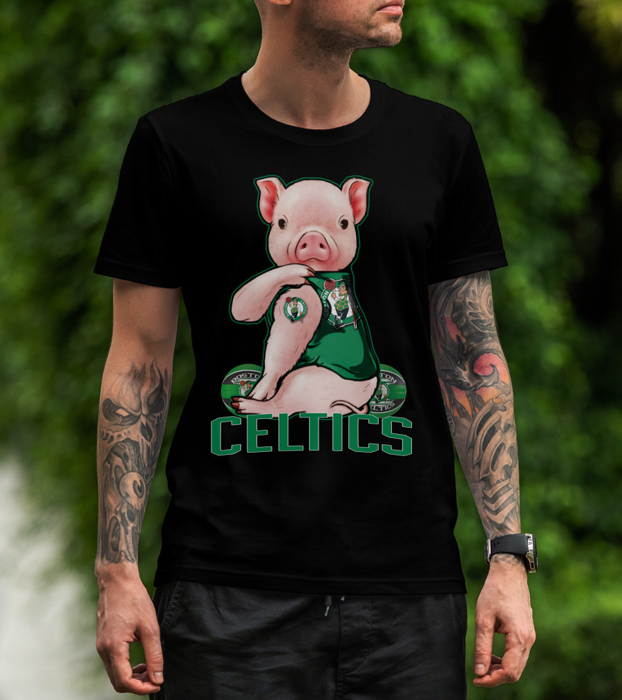Pig Wearing Boston Celtics Logo Jersey With Celtics Text T-Shirt