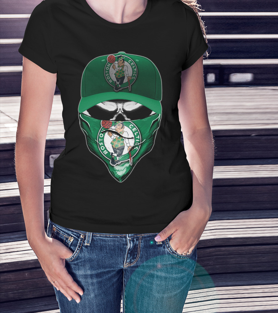 Boston Celtics Skull Mask Green Hat T-Shirt