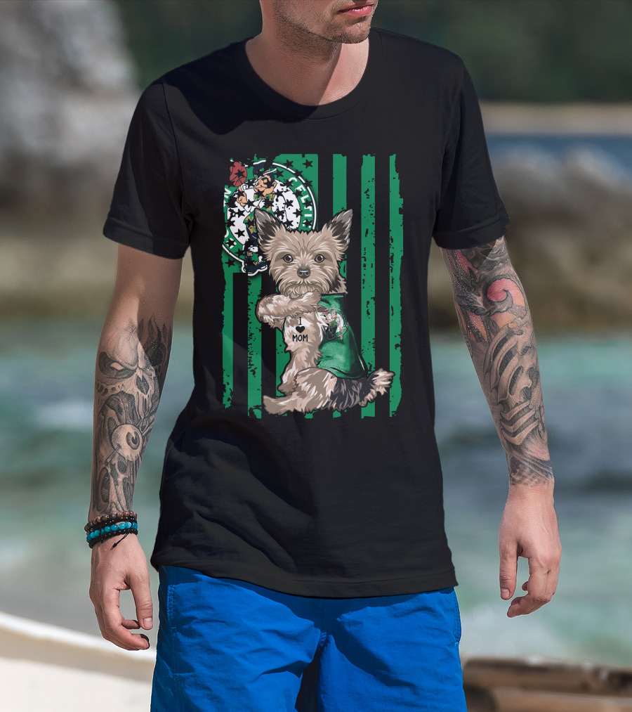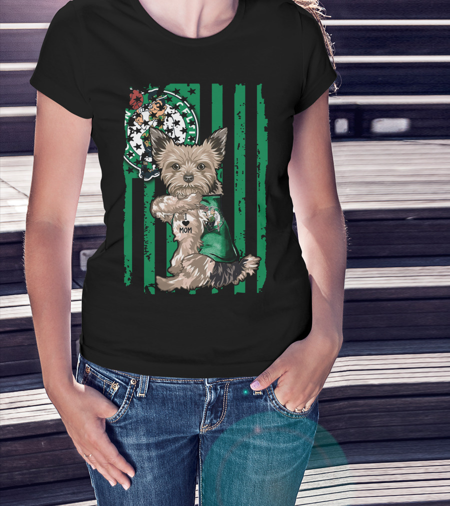 Yorkshire Terrier I Love Mom Boston Celtics Green Stripes T-Shirt