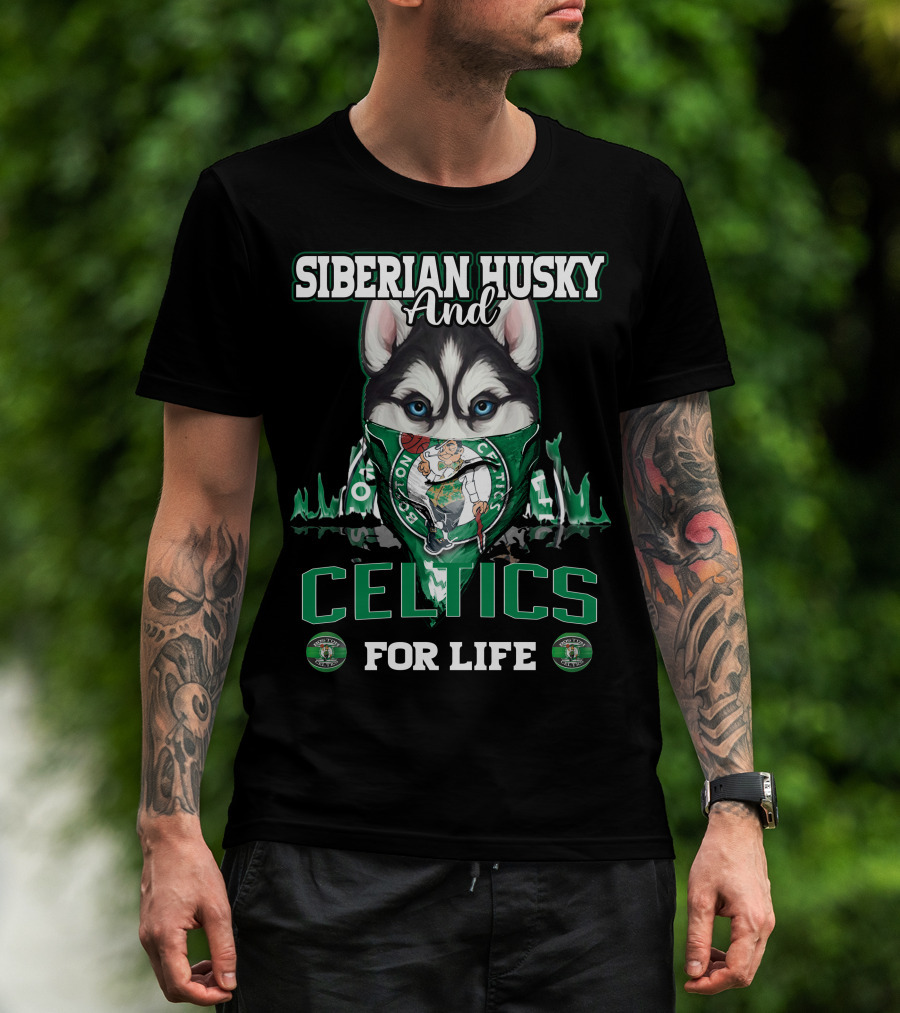 Siberian Husky And Celtics For Life Boston Celtics T-Shirt