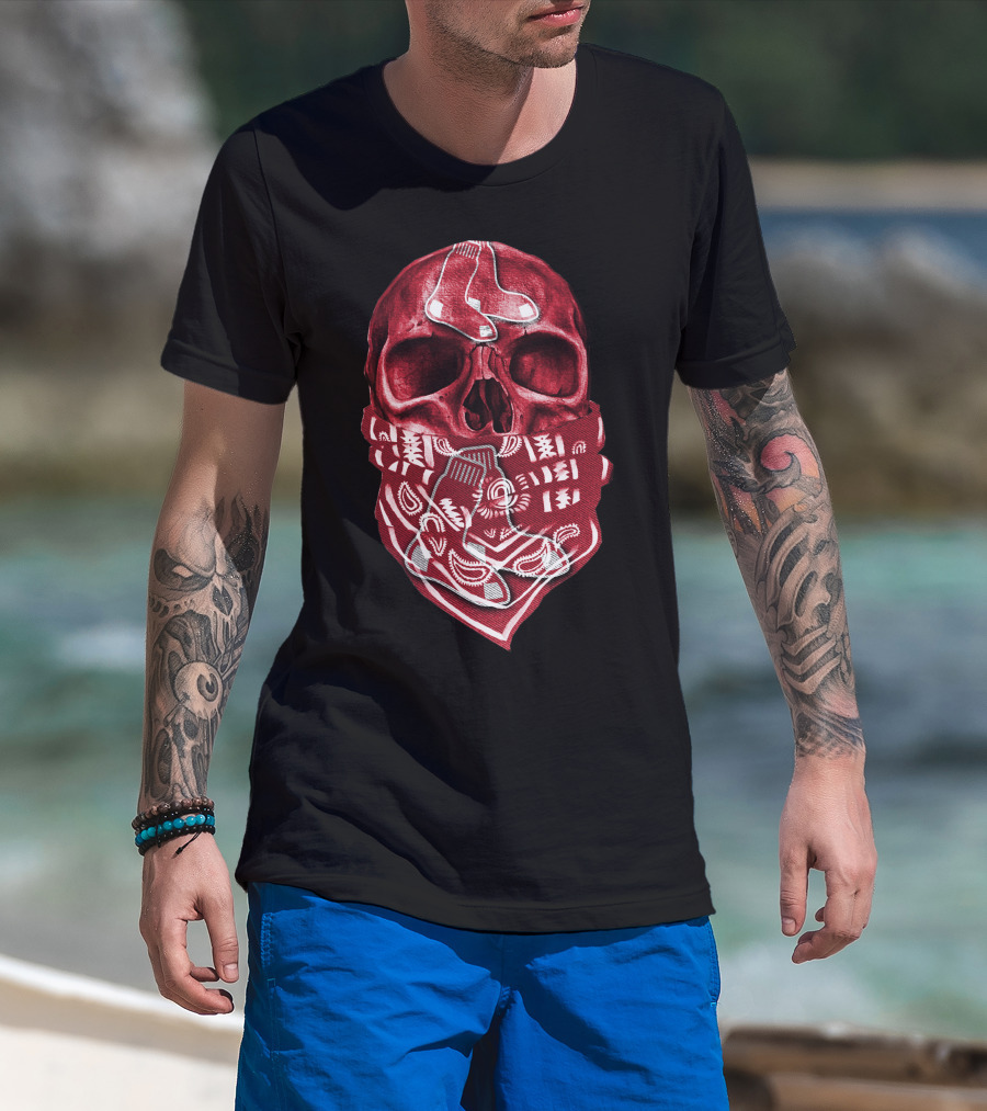 Skull With Bandana Boston Red Sox T-Shirt