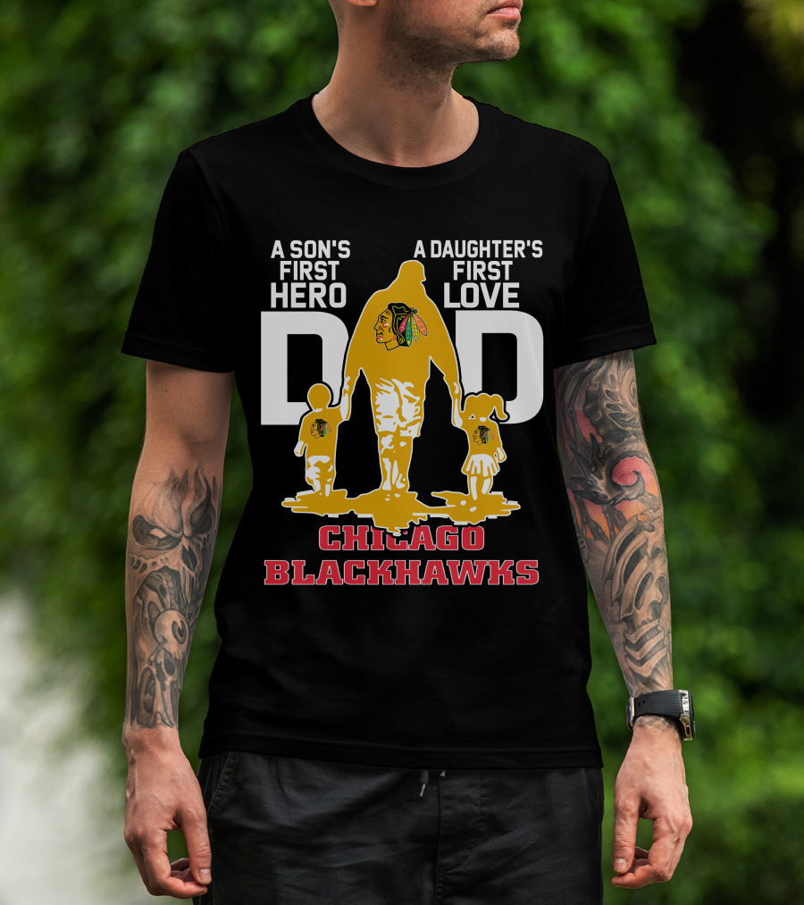 A Son's First Hero A Daughter's First Love Dad Chicago Blackhawks T-Shirt