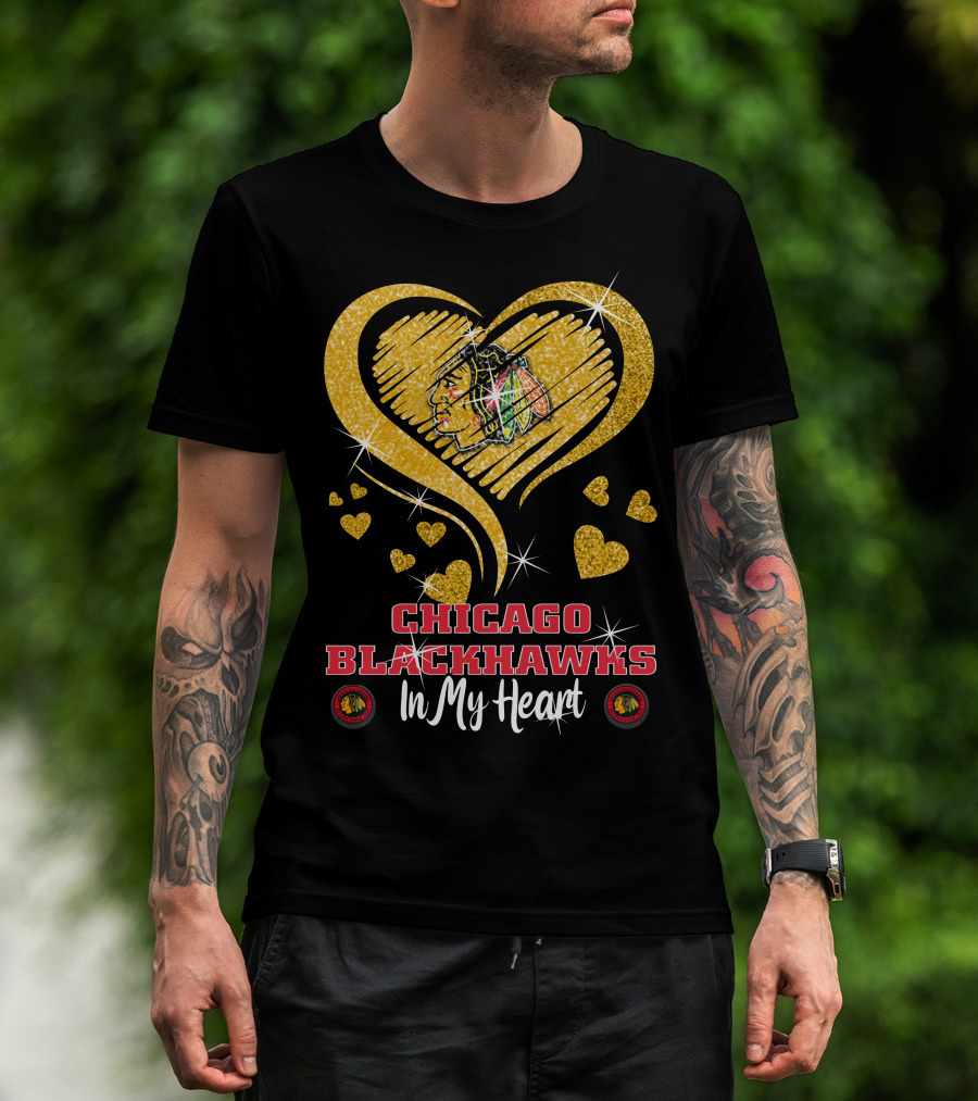 Chicago Blackhawks In My Heart Golden Glitter Logo Hearts T-Shirt