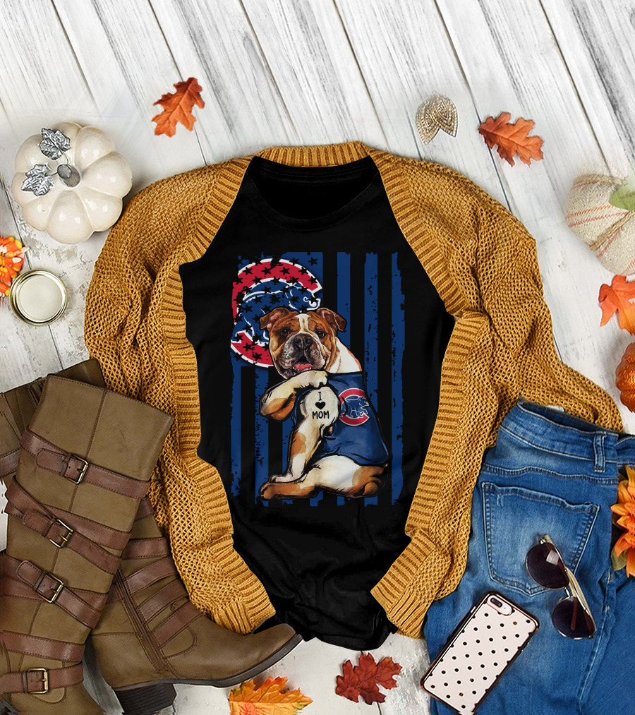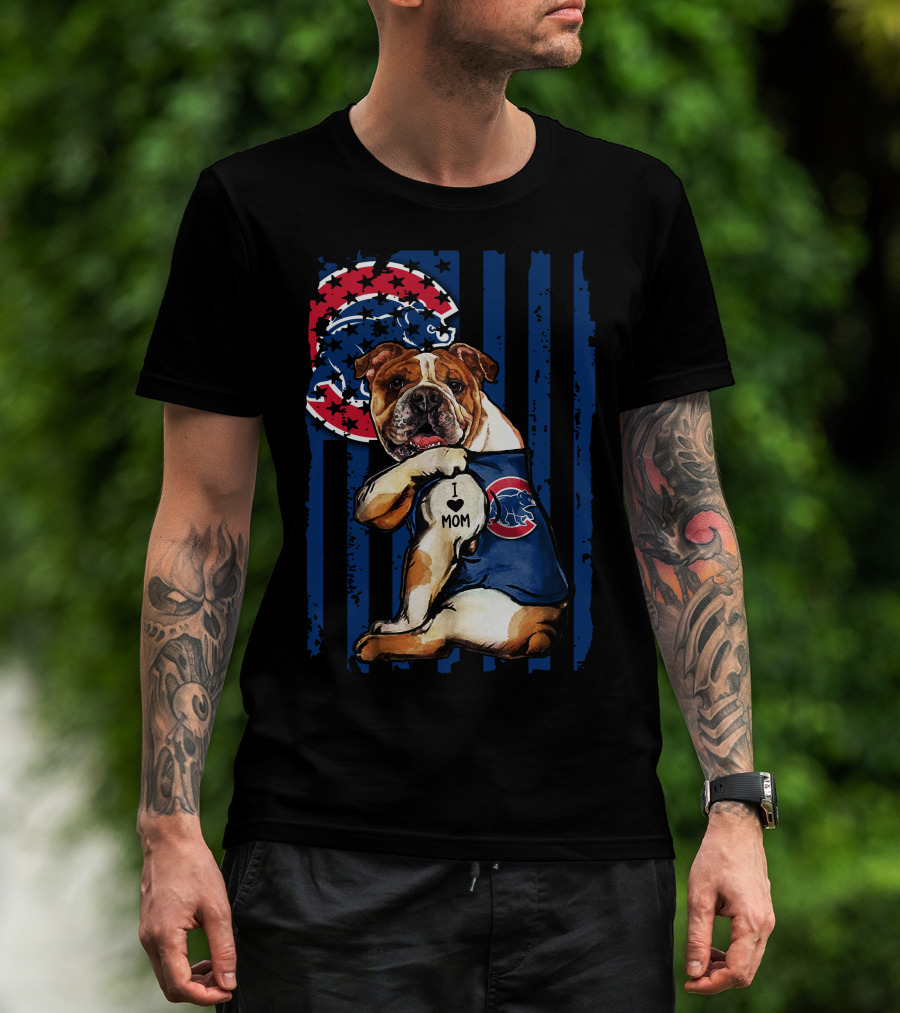 Bulldog I Love Mom Chicago Cubs Logo Star Stripes T-Shirt