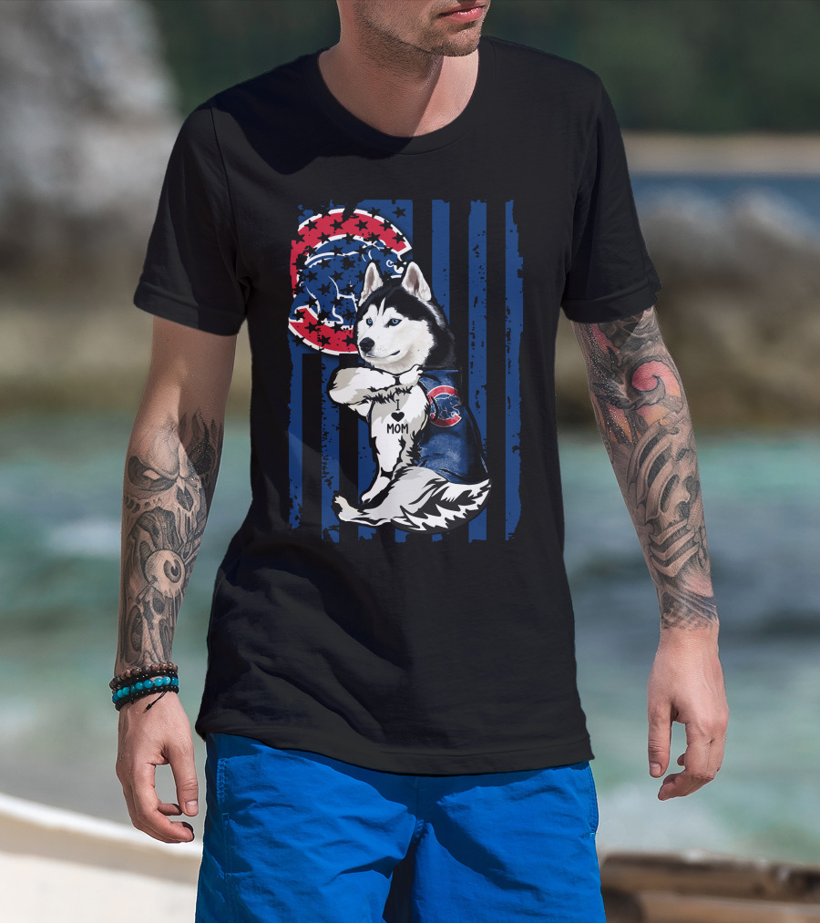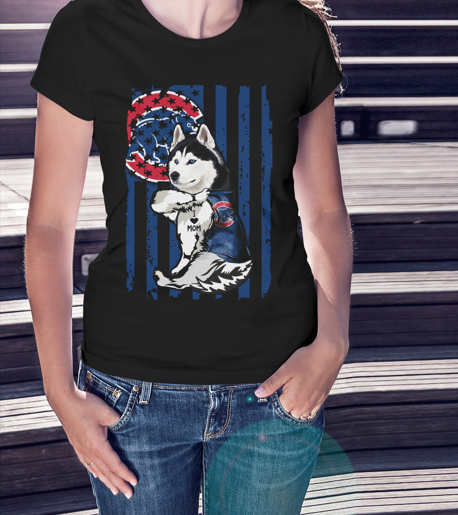 Siberian Husky I Love Mom Chicago Cubs Fan T-Shirt