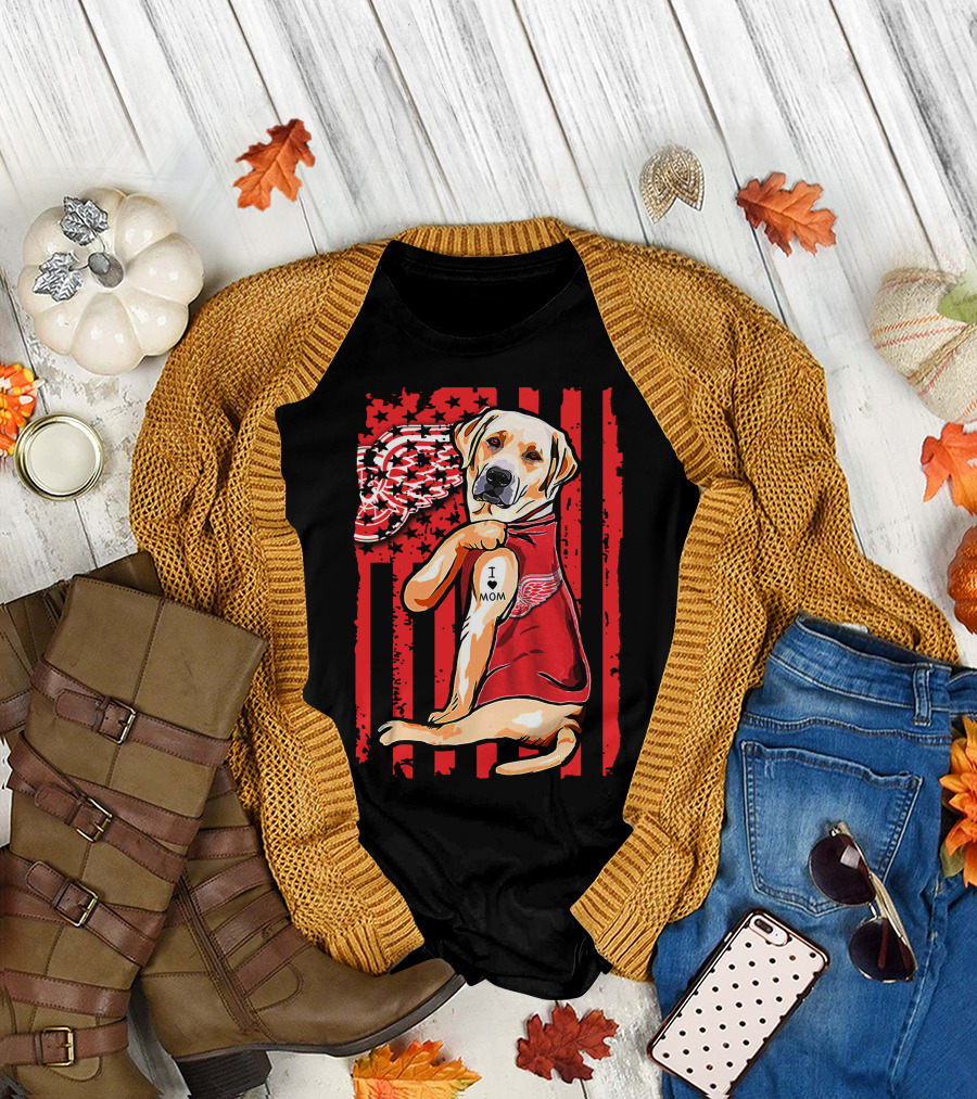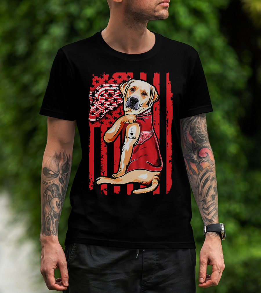 Labrador Retriever I Love Mom Detroit Red Wings Fan T-Shirt
