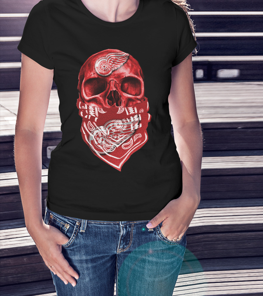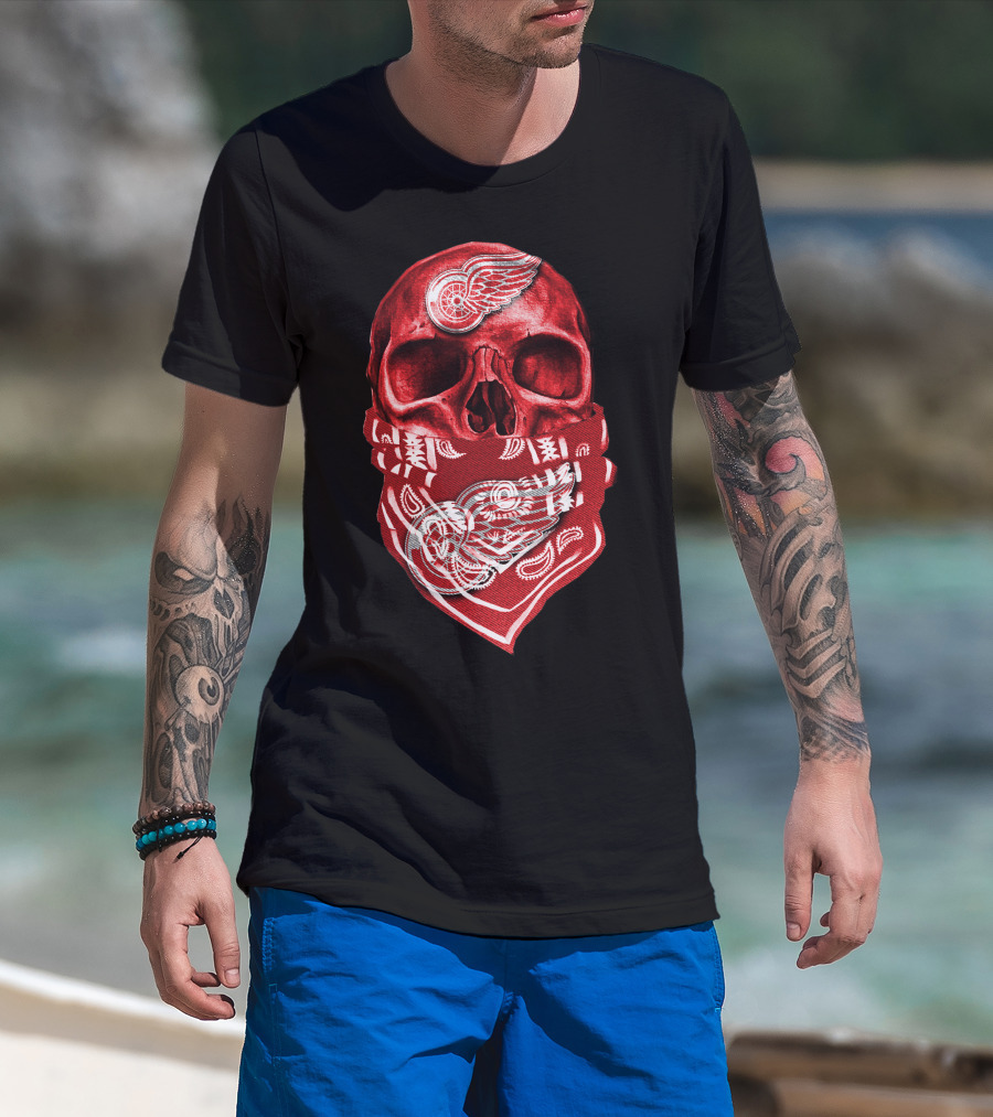 Skull With Detroit Red Wings Bandana T-Shirt