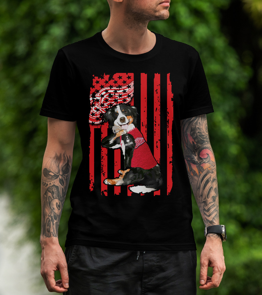 Border Collie I Love Mom Detroit Red Wings USA Flag T-Shirt