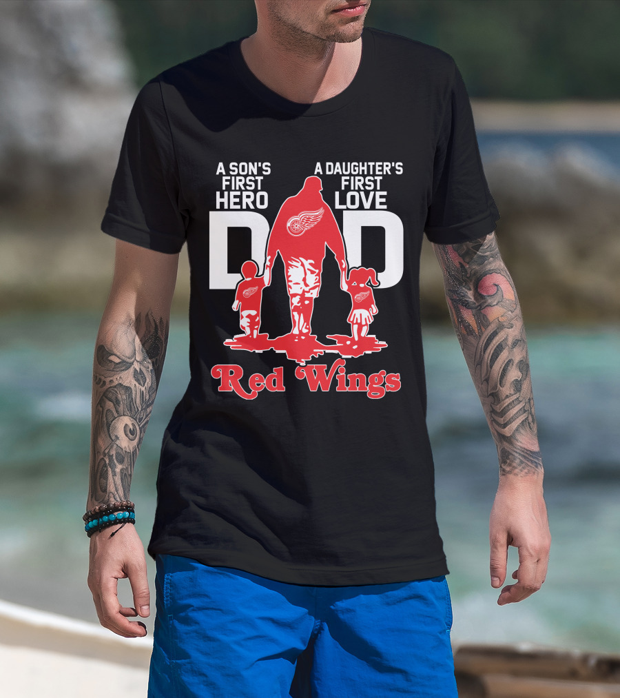 A Son's First Hero A Daughter's First Love Dad Detroit Red Wings T-Shirt