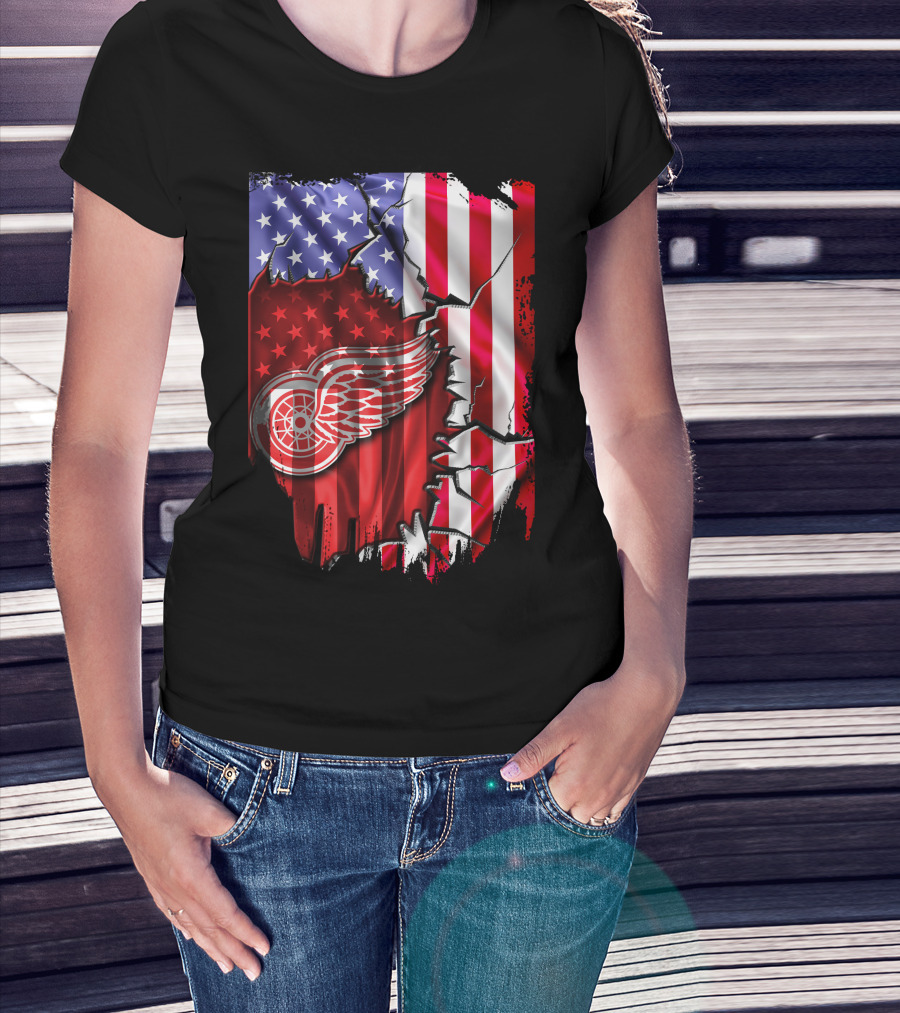Flag Stars And Stripes Detroit Red Wings Winged Wheel T-Shirt