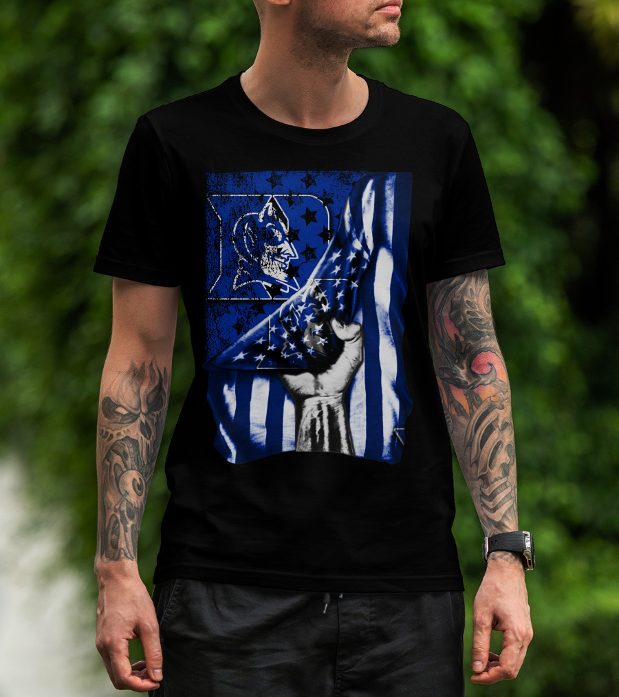 USA Flag With Duke Blue Devils Symbolic T-Shirt