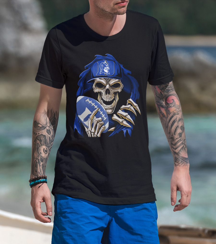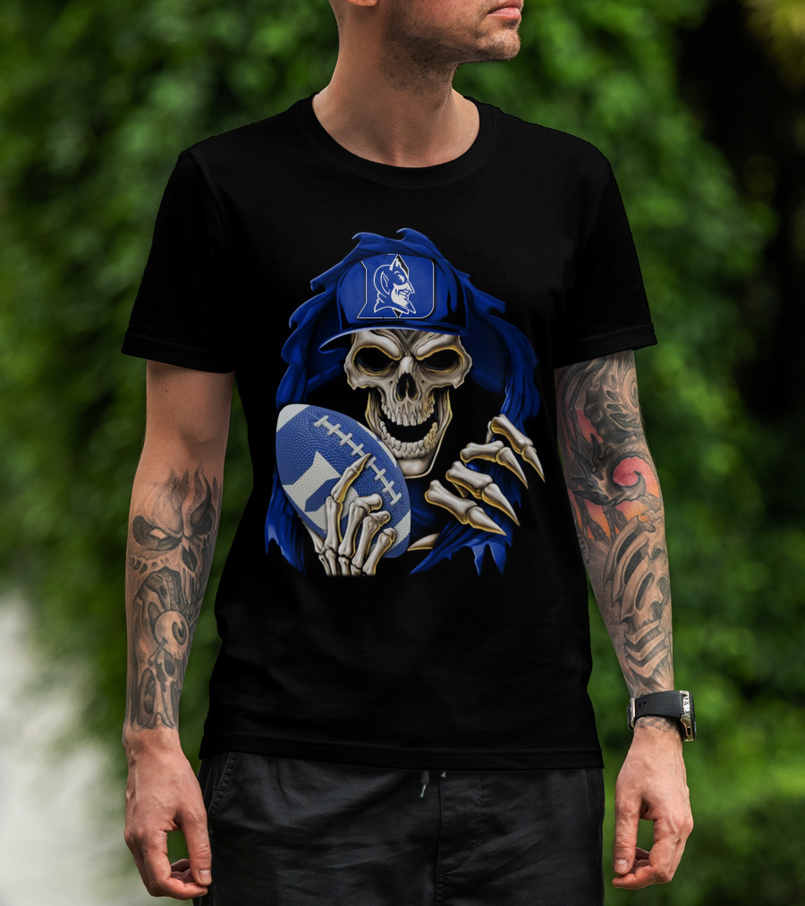 Duke Blue Devils Skull With Football And Logo Hat T-Shirt