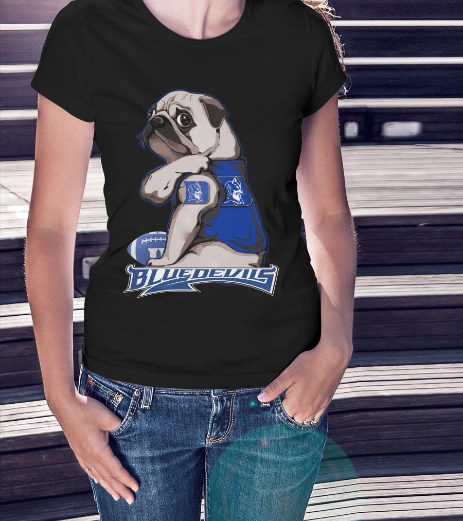Pug Wearing Blue Devils Football Jersey T-Shirt