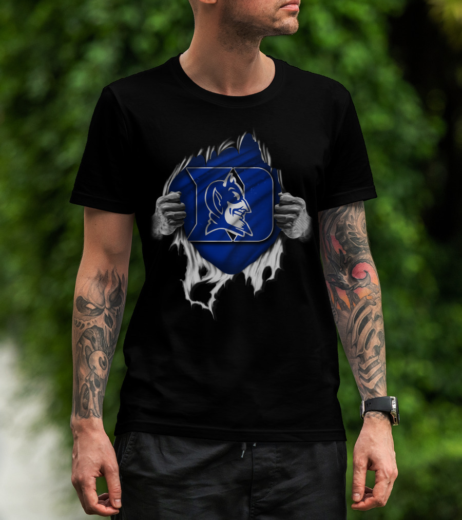 Torn Duke Blue Devils Logo Revealed Through Ripped Fabric T-Shirt