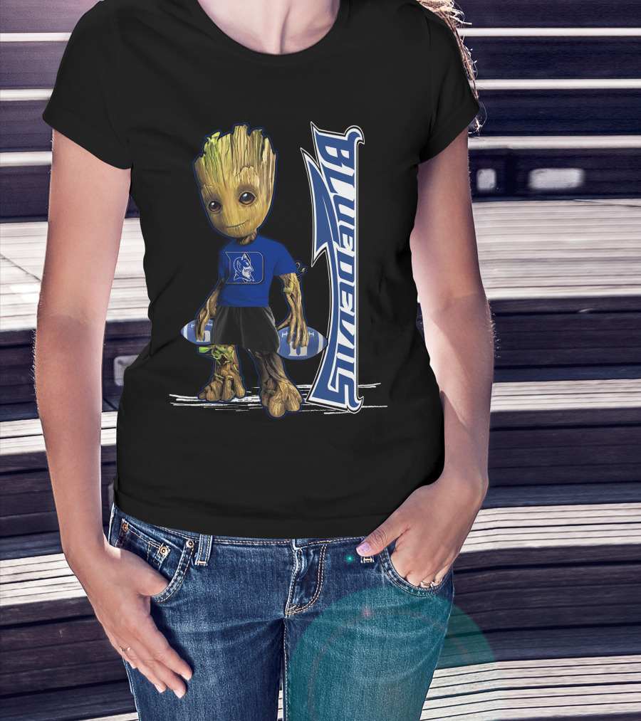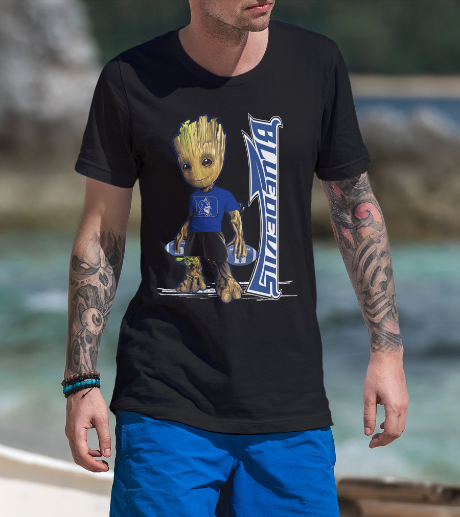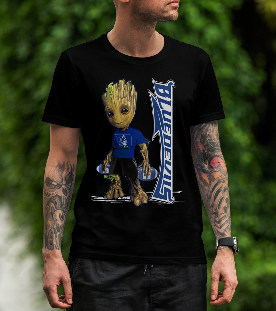 Groot Wearing Duke Blue Devils Shirt With Blue Devils Logo And Football T-Shirt
