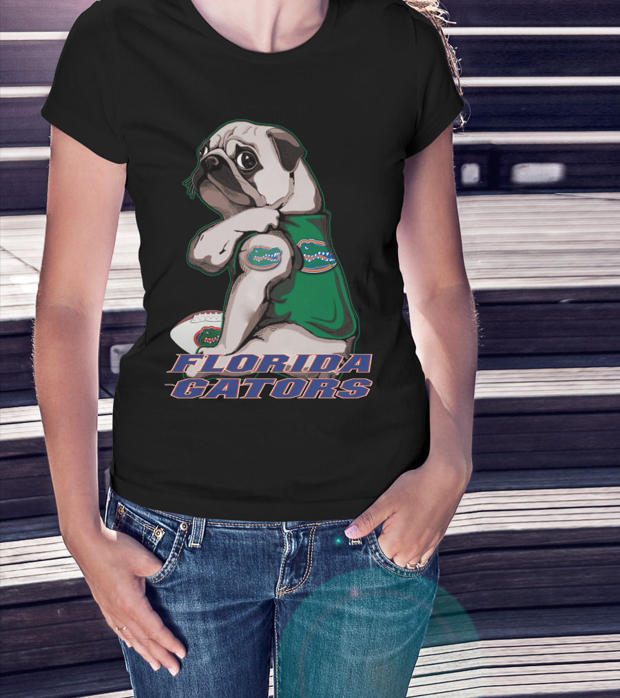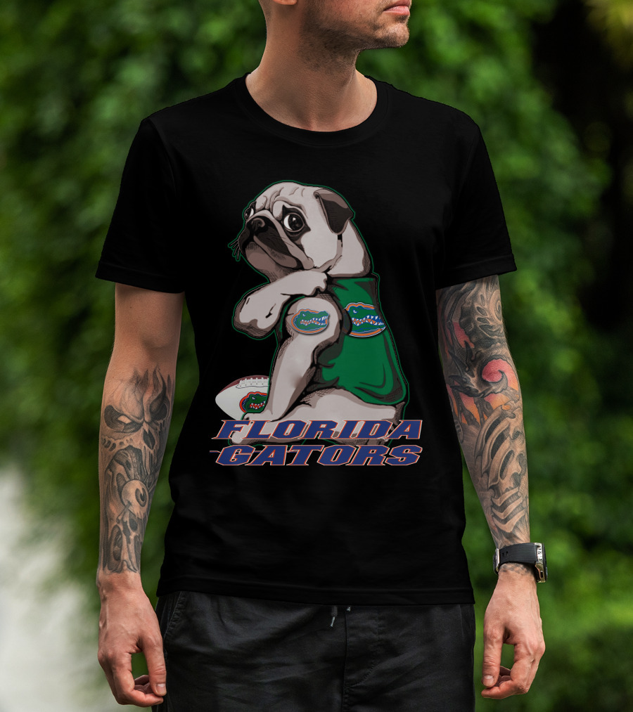 Pug Wearing Florida Gators Shirt With Football T-Shirt